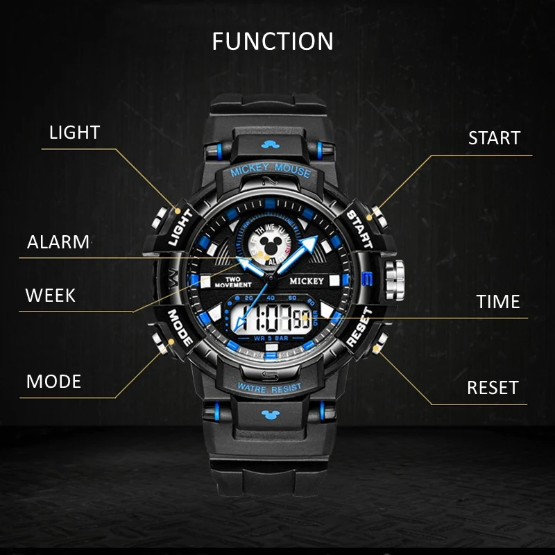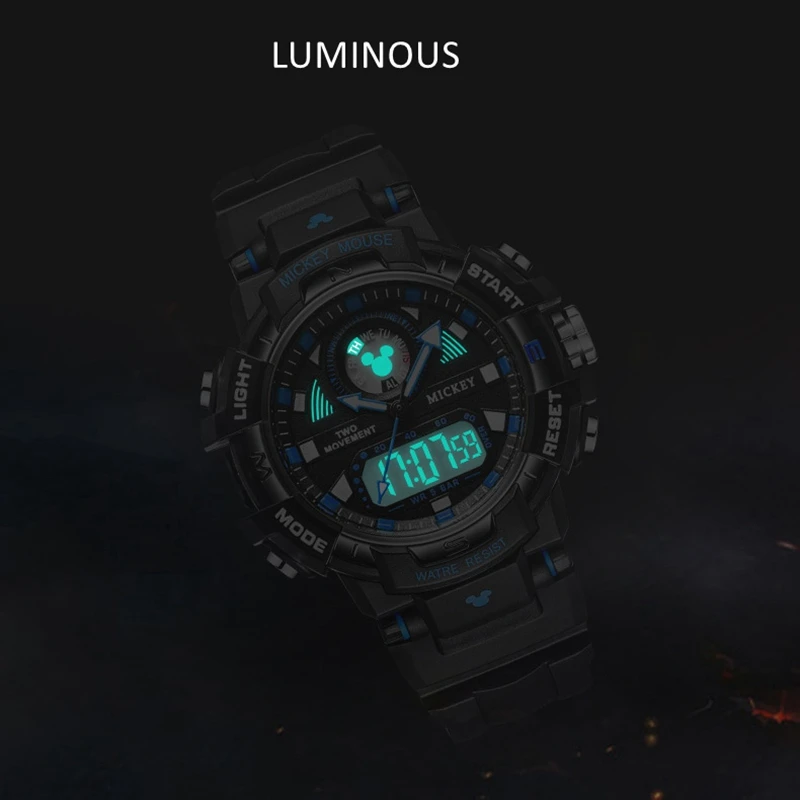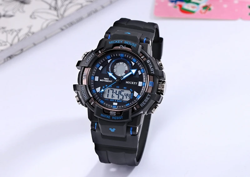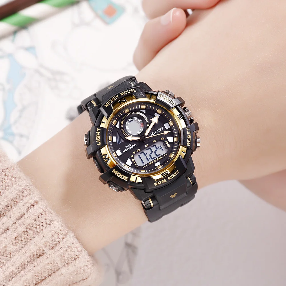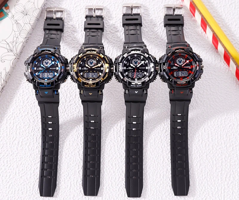 Новые спортивные стильные многофункциональные часы с двойным дисплеем и Микки Маусом, резиновые цифровые и кварцевые часы для подростков, водонепроницаемые часы для детей 5 АТМ, подарок для детей