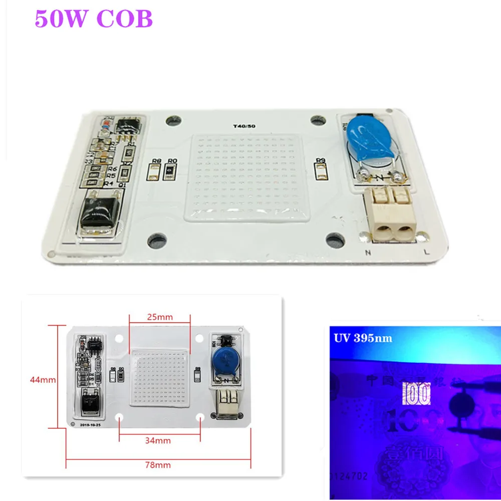 COB диод 50W 395nm светодиодная УФ-лампа чип 110V 220V DOB AC Ультрафиолетовый лечения детектор металла кварцевые черный светильник бактерицидные лампы дезинфекции