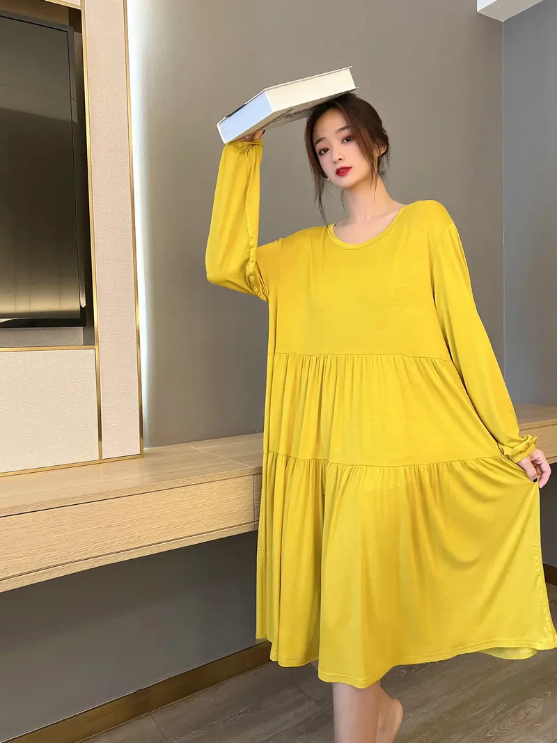 Отзывы о Повседневная Ночная рубашка Fdfklak с длинным рукавом новинка весенне-летняя тонкая