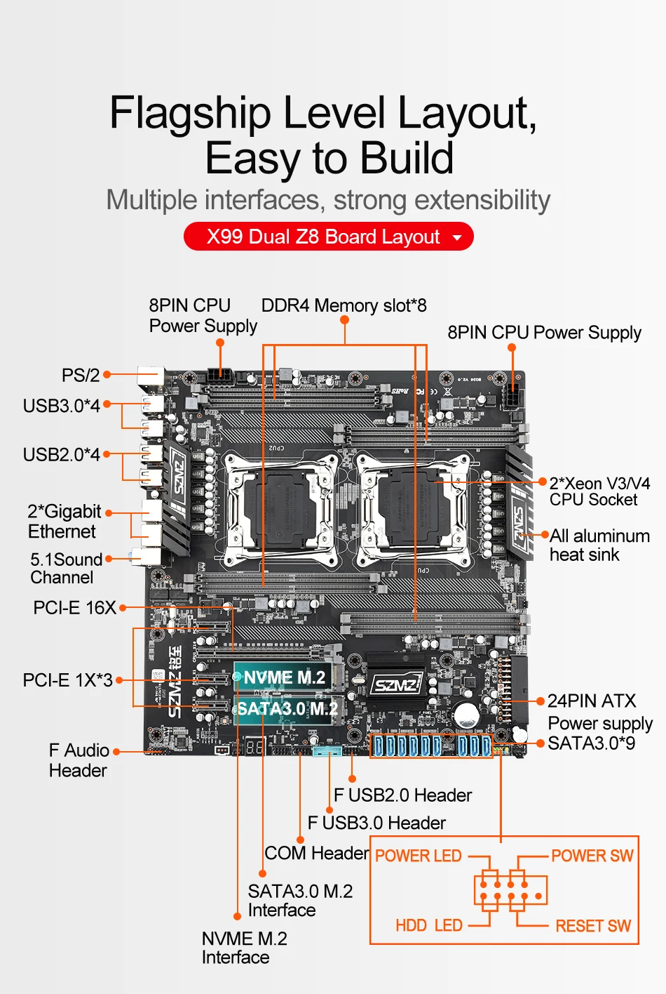 Отзывы о SZMZ X99 Dual Z8 CPU материнская плата 8 каналов с двойным процессором Xeon LGA 2011-3 E5 V3 V4 DDR4 RECC