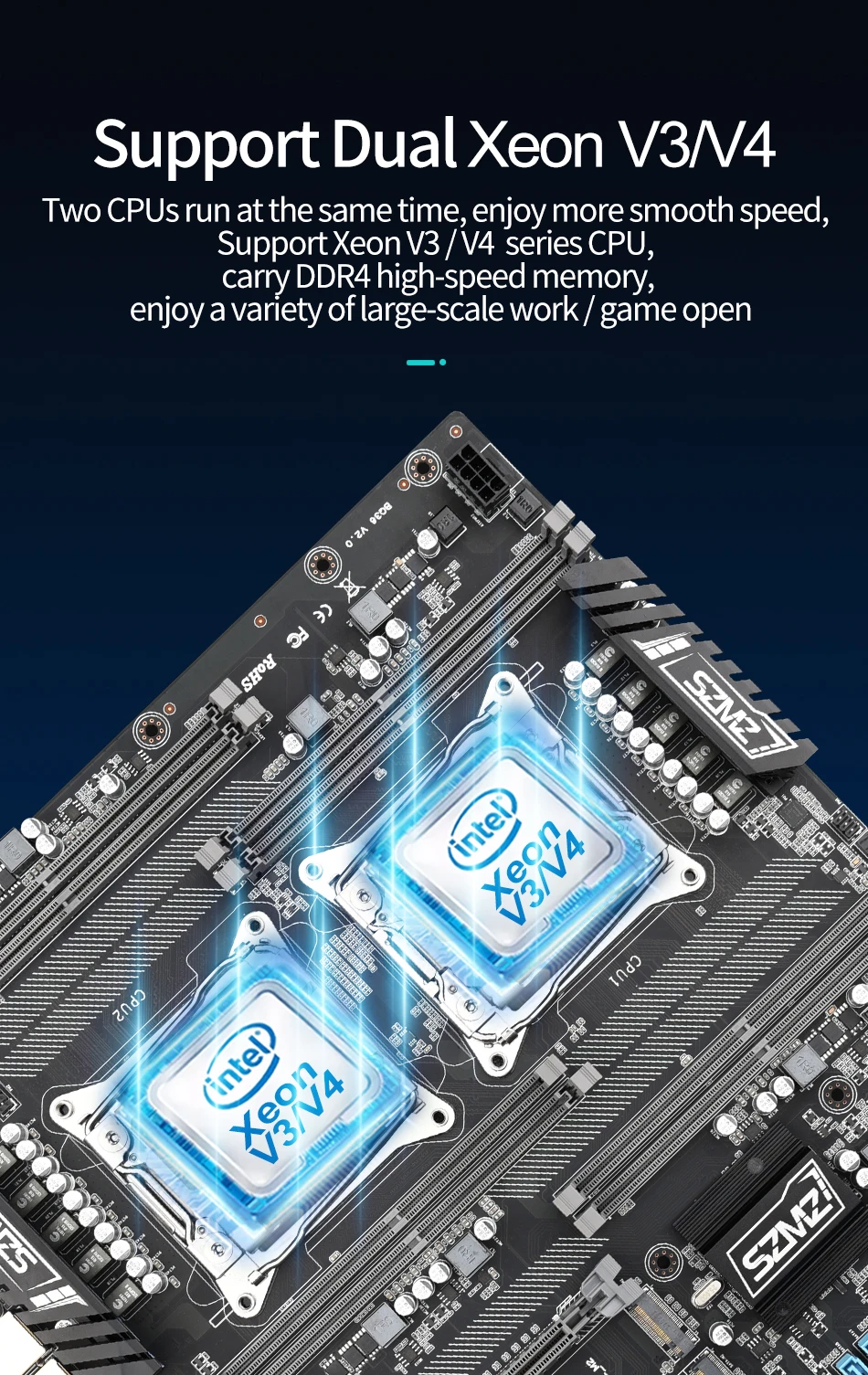 Два процессора работают одновременно, наслаждайтесь более плавной скоростью, поддержка процессора серии Xeon V3 /V4,