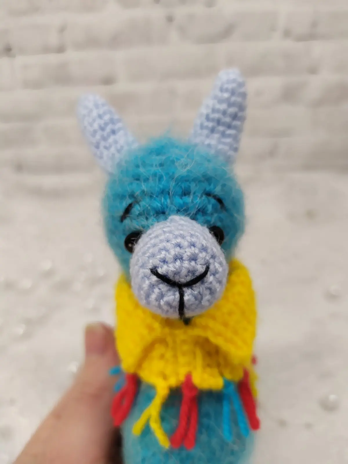 Симпатичная маленькая альпака в поисках дома. Очень легкая и пушистая. Очень приятно держать в руках. Успокаивает.