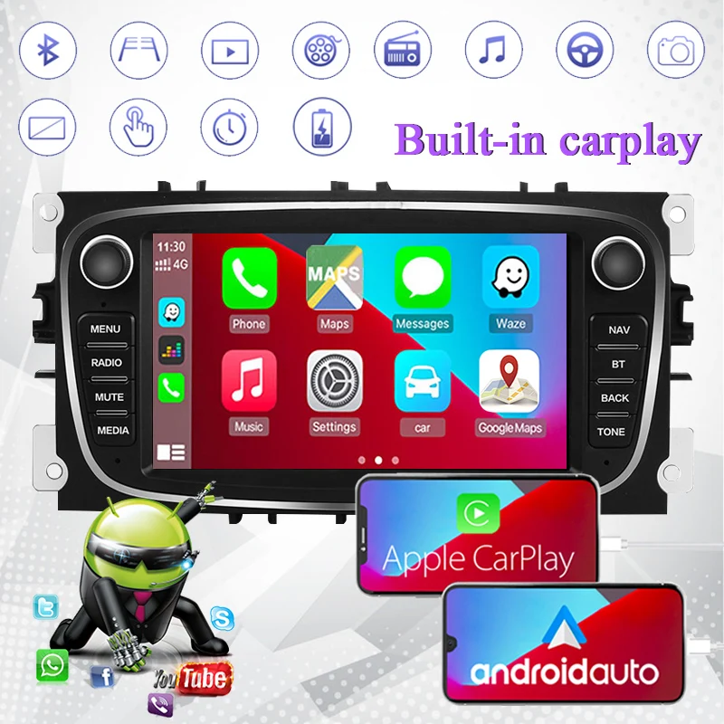 Android 9.0 GPS автомагнитолы 2 Din Автомобильный мультимедийный плеер 7 '' (carplay) Аудио плеер для Ford/Focus/S-Max/Mondeo 9/GalaxyC-Max