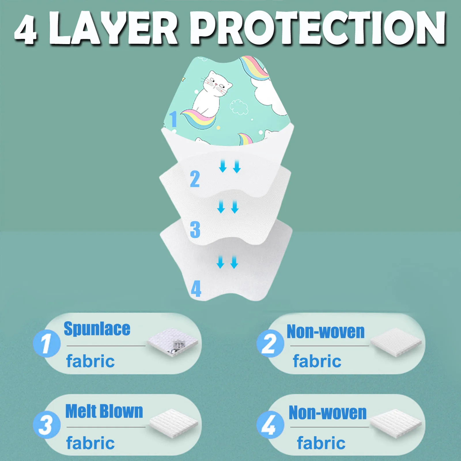 Детская одноразовая маска для лица, 4 слойные маски для ушей