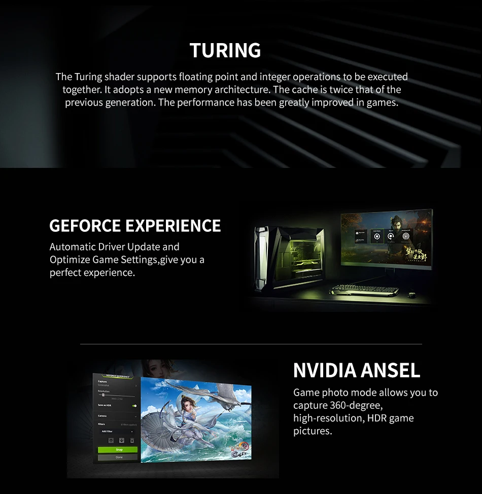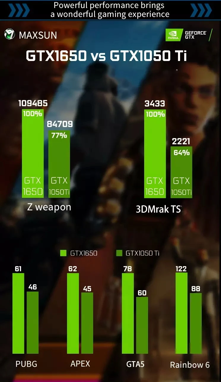 GeForce GTX 1650 Terninator 4GГрафическая карта бронирована металлической панелью и крутым дизайном освещения. Он имеет896 ядер CUDAИ1665 МГц boost clock,4 ГБВидеопамять capapcity иGDDR5Для гораздо более быстрой скорости.
