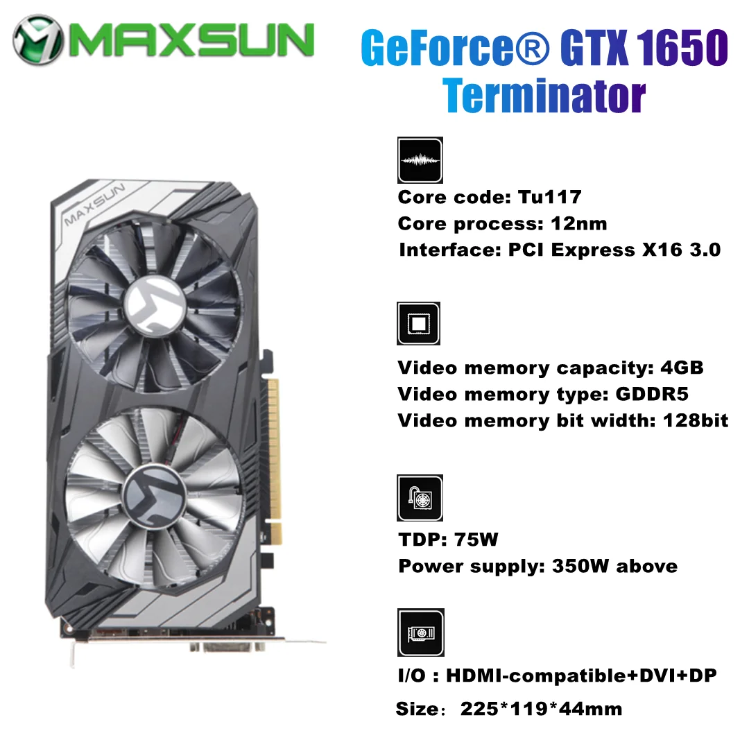 Отзывы о MAXSUN GeForce GTX1650 Terminator 4G видеокарты Nvidia GDDR5 128 бит GPU игровая видеокарта для ПК DP DVI -