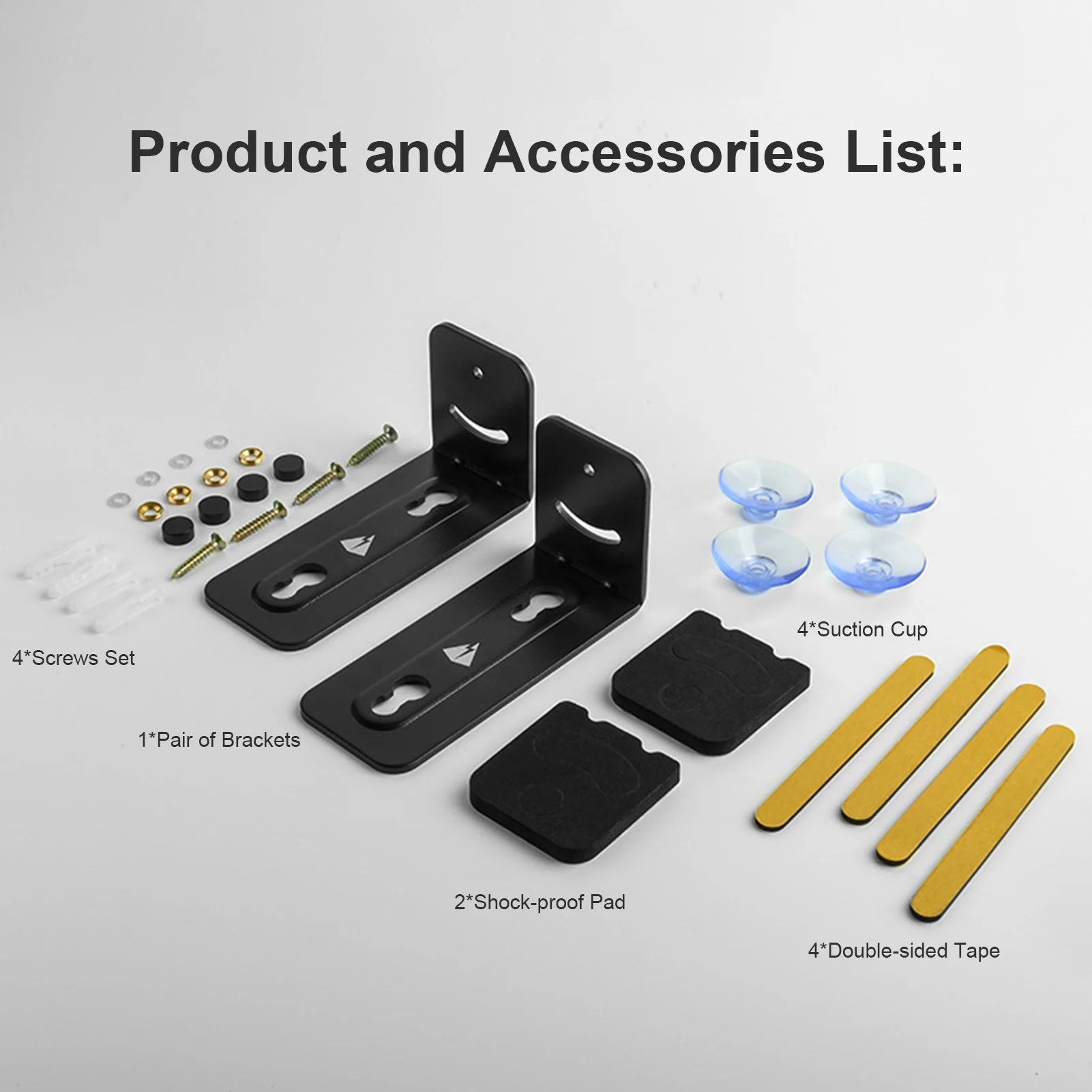 5. Простота установки: Размер: около L120 * W50 * h60мм/L4.72 * W1.97 * H2.36in. Посылка включает в себя: 1 пару кронштейнов звукового стержня, 4 присоски, 4 двухсторонних клейких ленты, 2 резиновых прокладки EVA и 4 комплекта винтов. Его легко установить, просто Просверлите несколько небольших отверстий в стене, а затем установите 2 кронштейна.