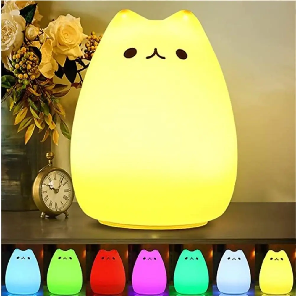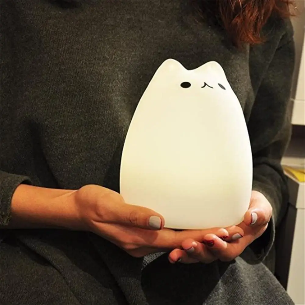 Отзывы о Светодиодный ночсветильник в виде кошки с сенсорным датчиком яркая силиконовая