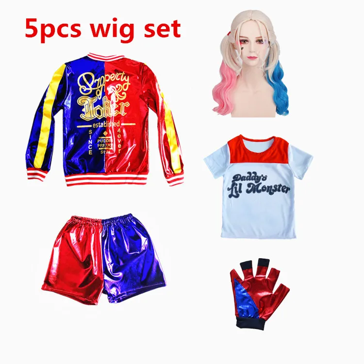 Отзывы о Детские костюмы для косплея Харли на Хэллоуин девочек пояс Квинн парик брюки