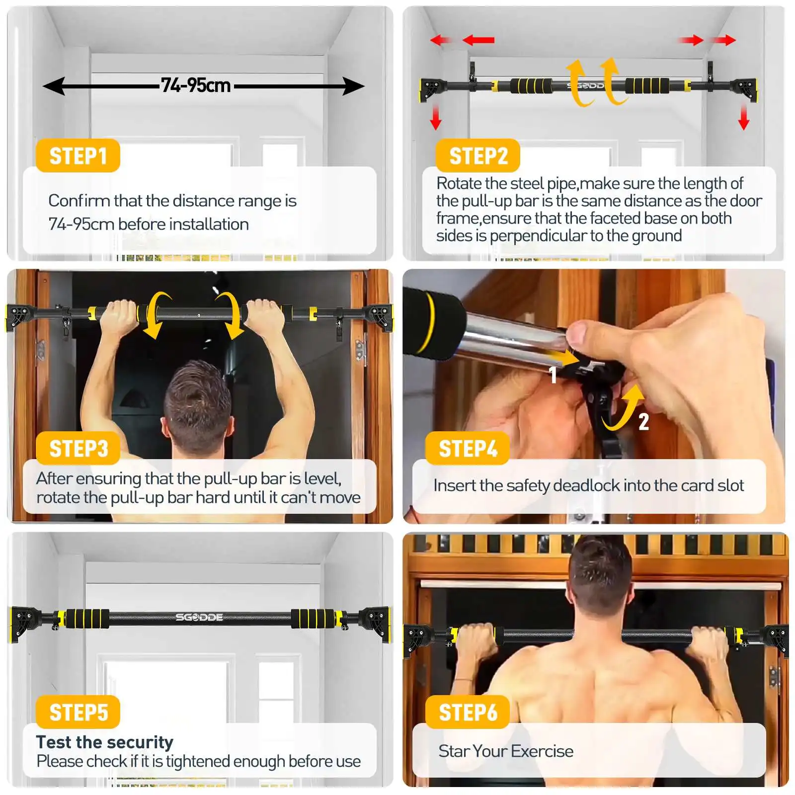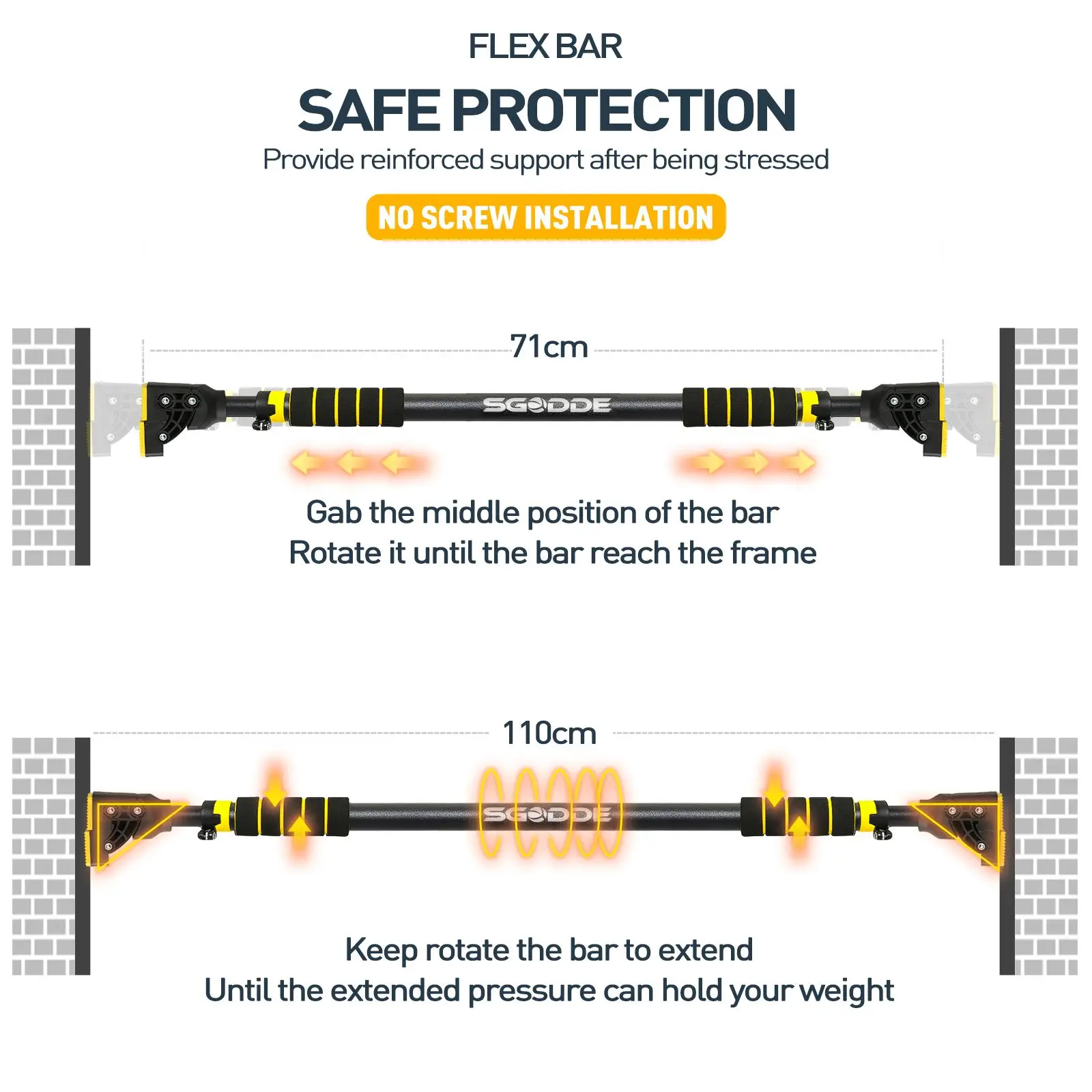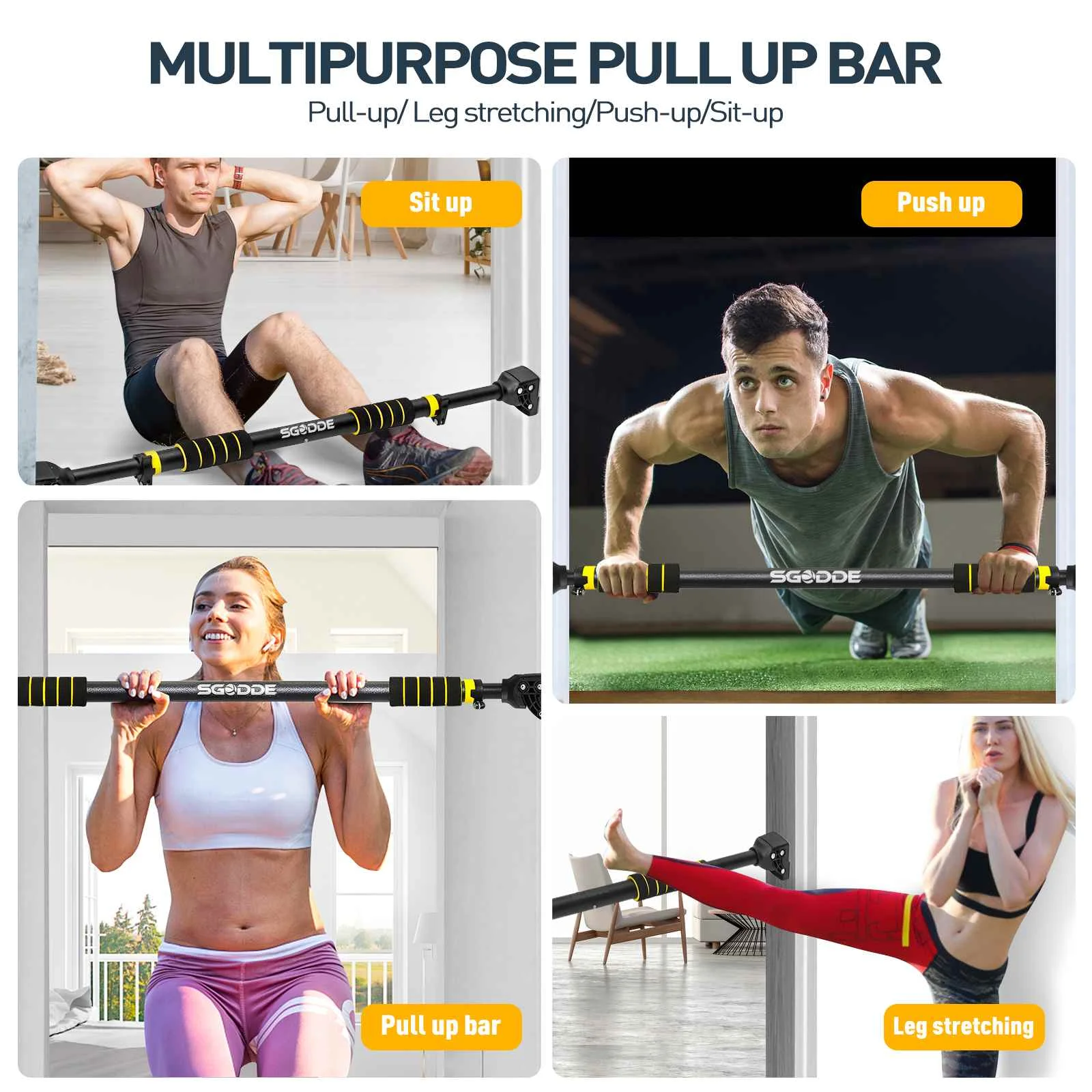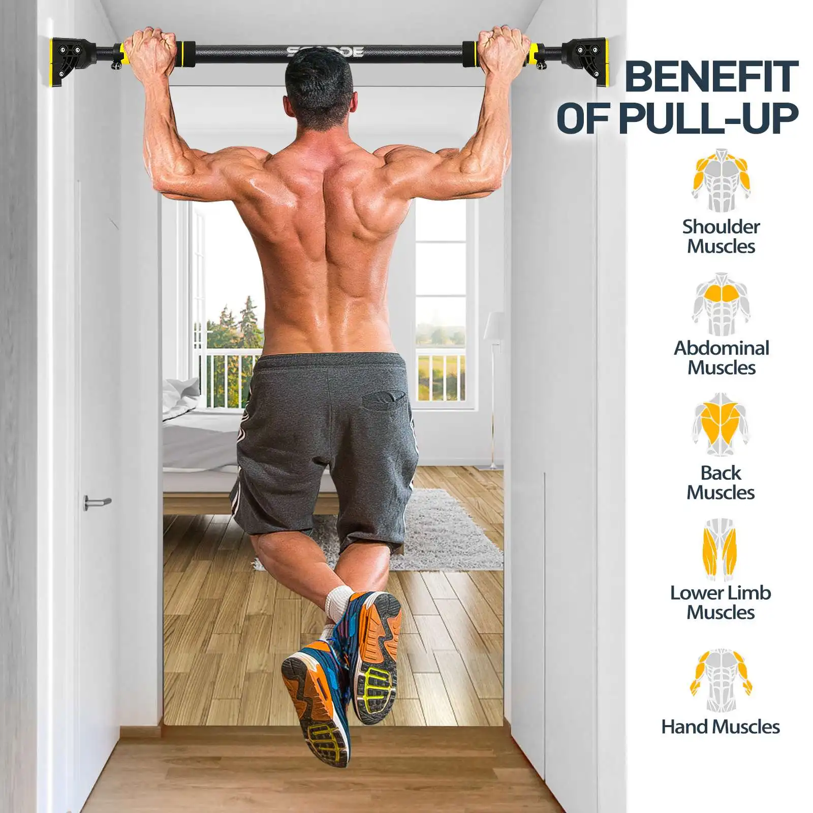 SGOEE PULL UP BAR является идеальным дополнением к любой фитнес-рутине для укрепления и тонизирования верхней части тела. С помощью этой горизонтальной планки можно построить руки, грудь, ядро и спину. Вы можете наслаждаться комфортом упражнений дома с этой лучшей выдвижной планкой. Отлично подходит для спины, плеч, груди, рук, трицепсов, бицепсов, Латов и передней части вашего АБС-пластика.