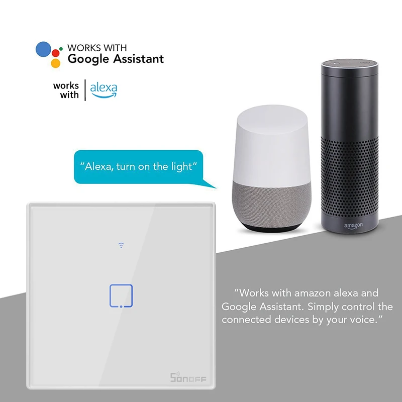 Отзывы о Умный настенный сенсорный выключатель SONOFF T1/T2/T3/T0 TX EU/UK/US 1/2/3Gang WiFi умный дом Vioce