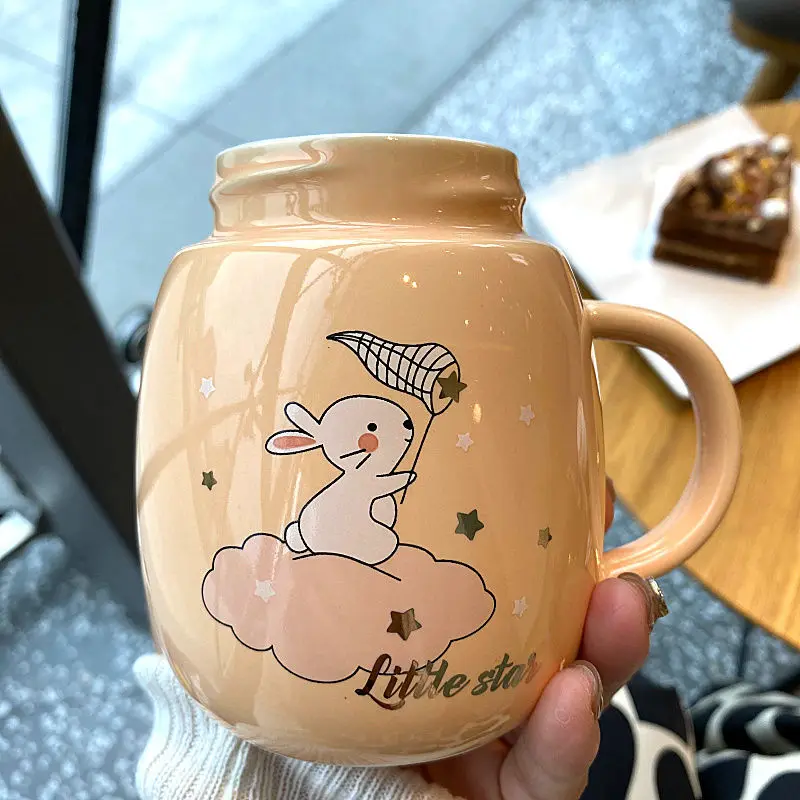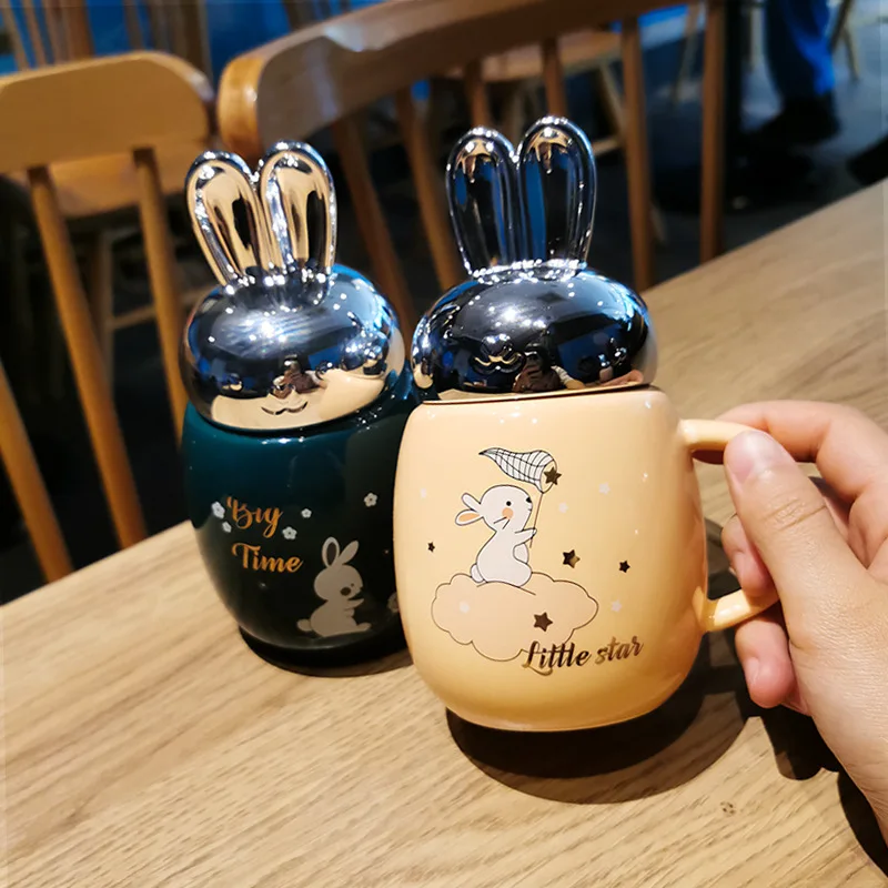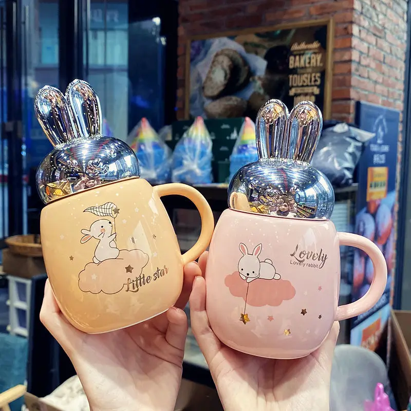 Отзывы о 400 мл Новая керамическая кружка с крышкой кроличьими ушками милый корейский