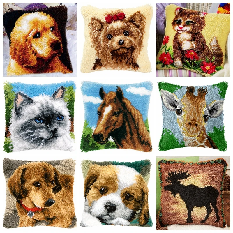 Мультяшная кошка собака милые животные 3D ковер вышивка подушка набор для рукоделия набор защелка Крюк Подушка Кнопка посылка knoopkussen