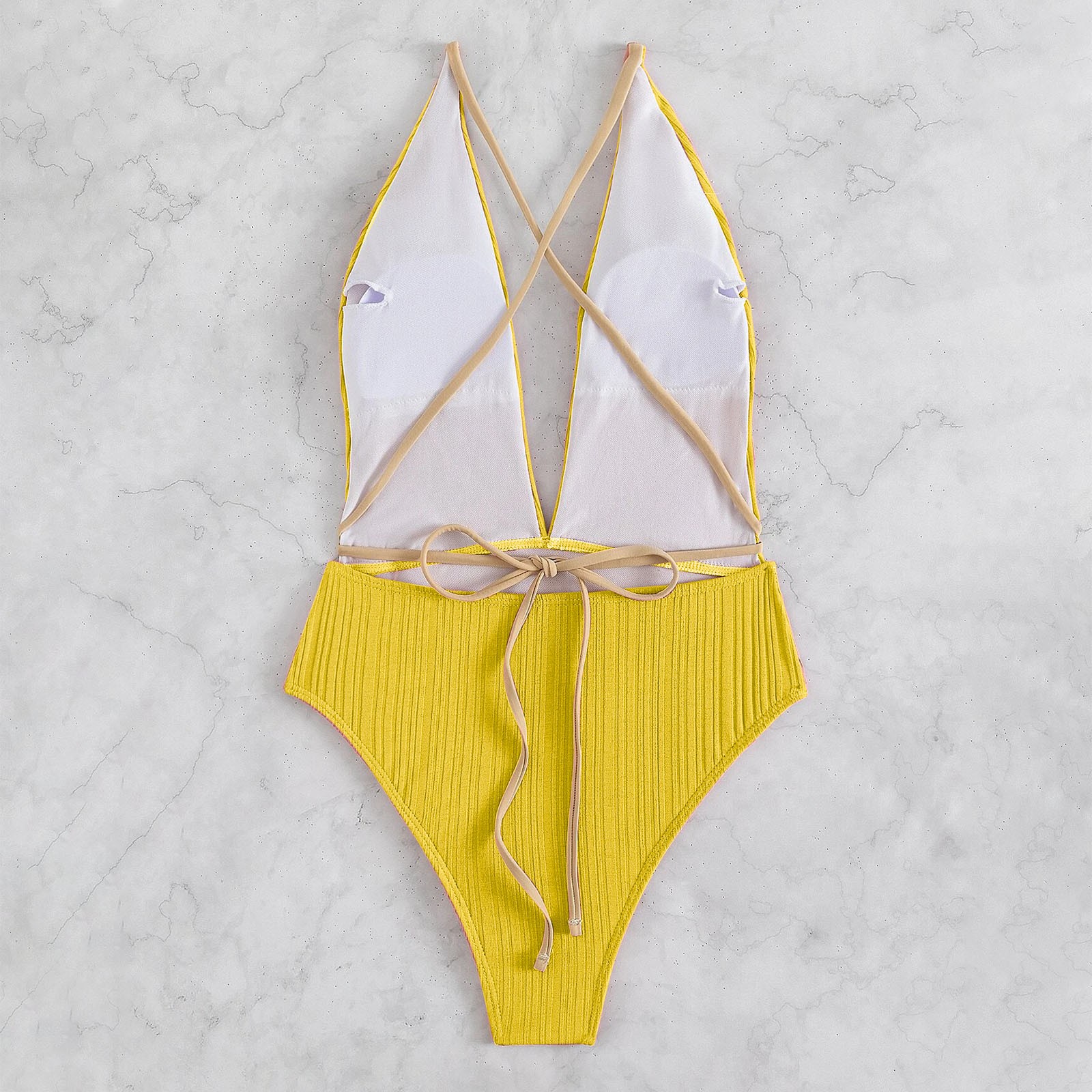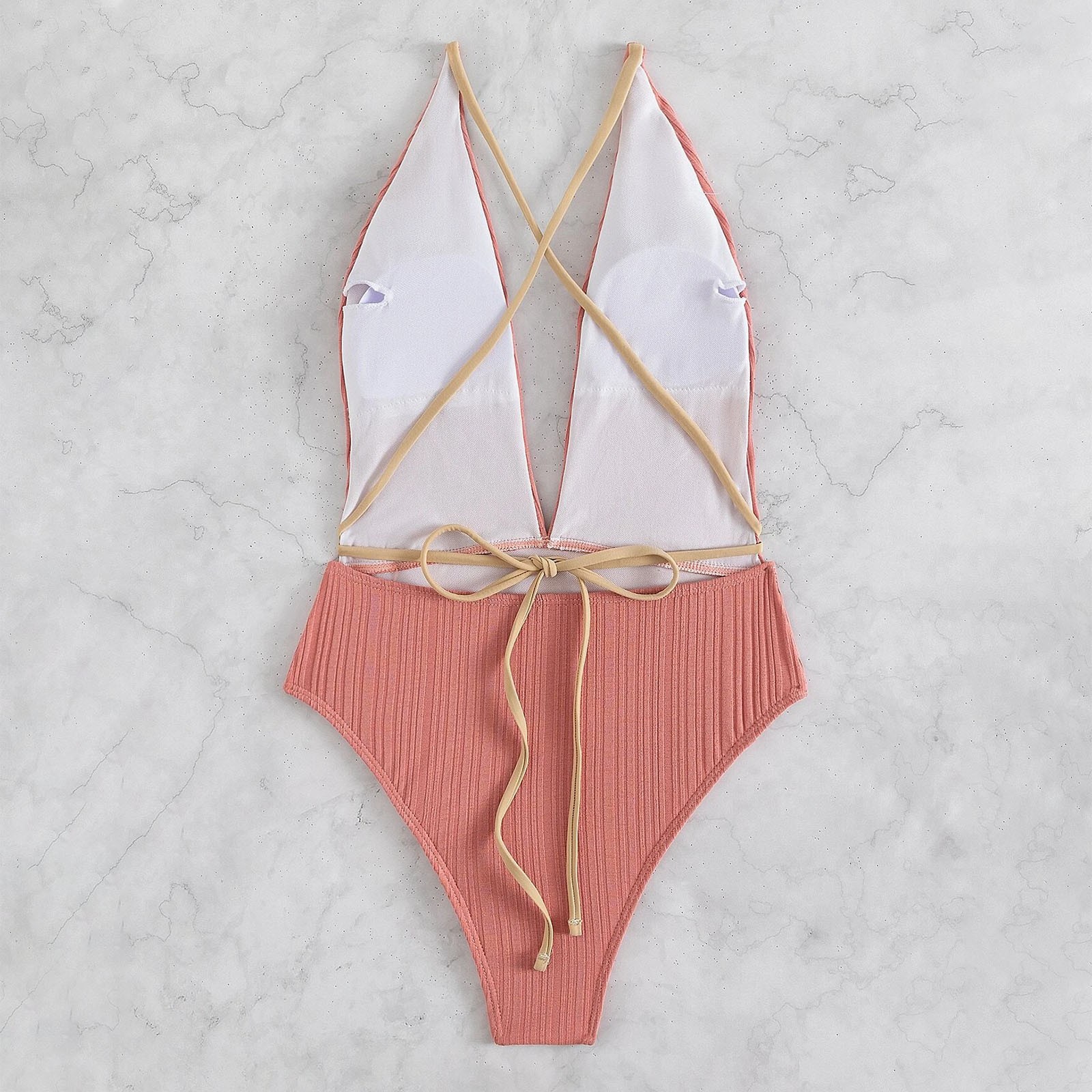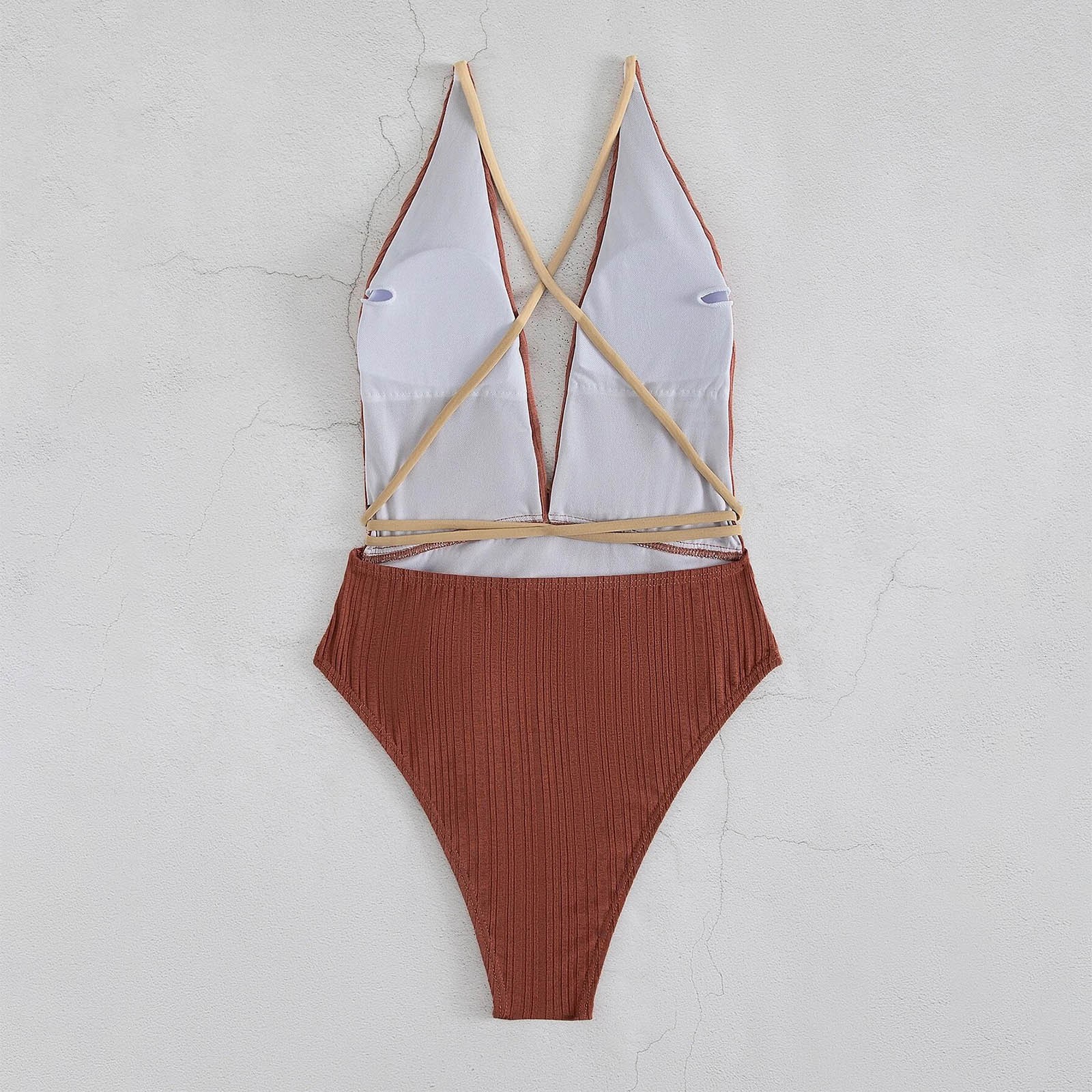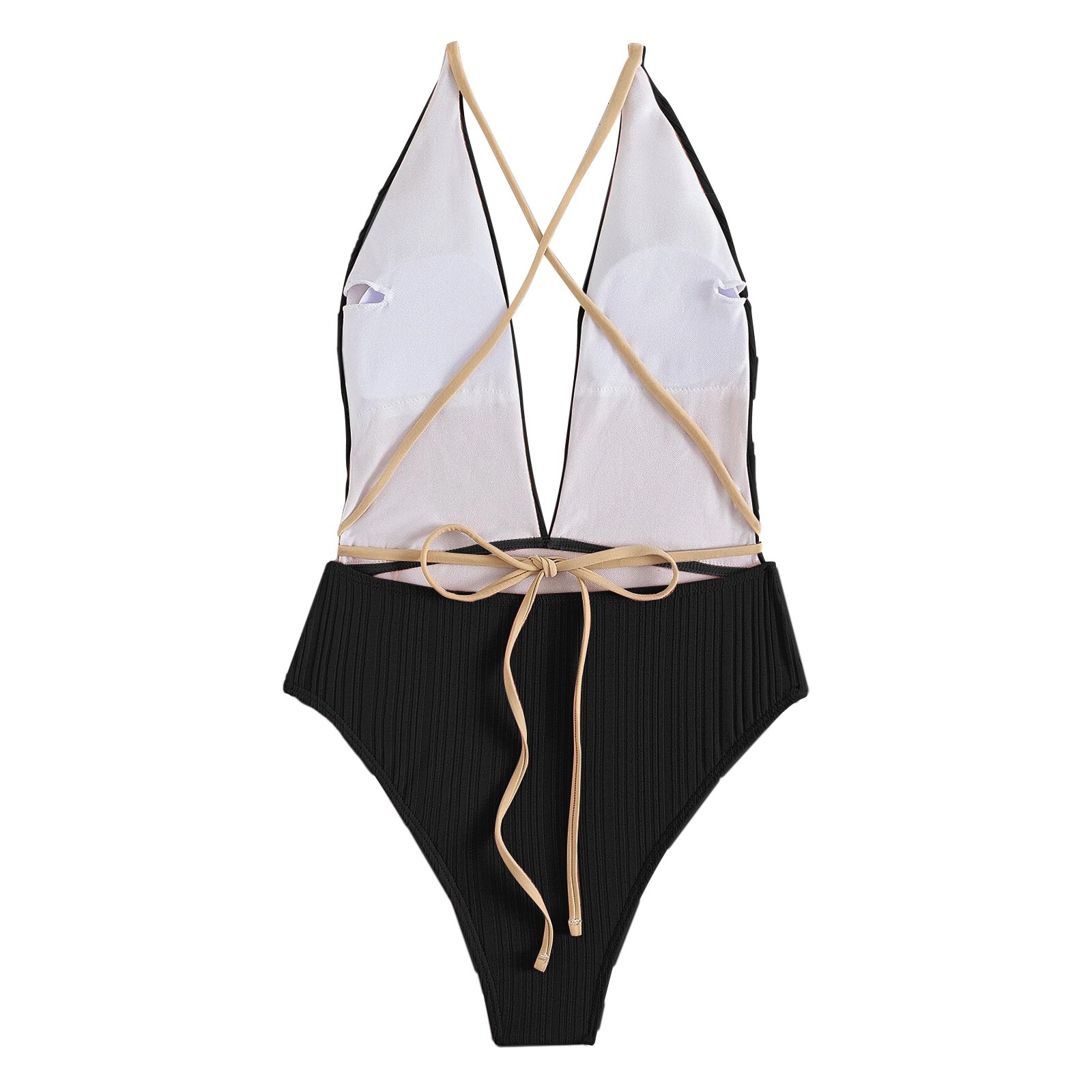 Женский сиамский купальный костюм, лоскутный Цельный купальник, глубокий v-образный вырез, сексуальный купальник для женщин с коротким рукавом, летняя пляжная одежда 2022