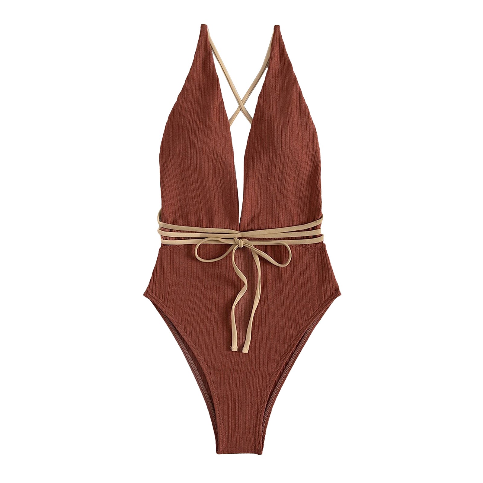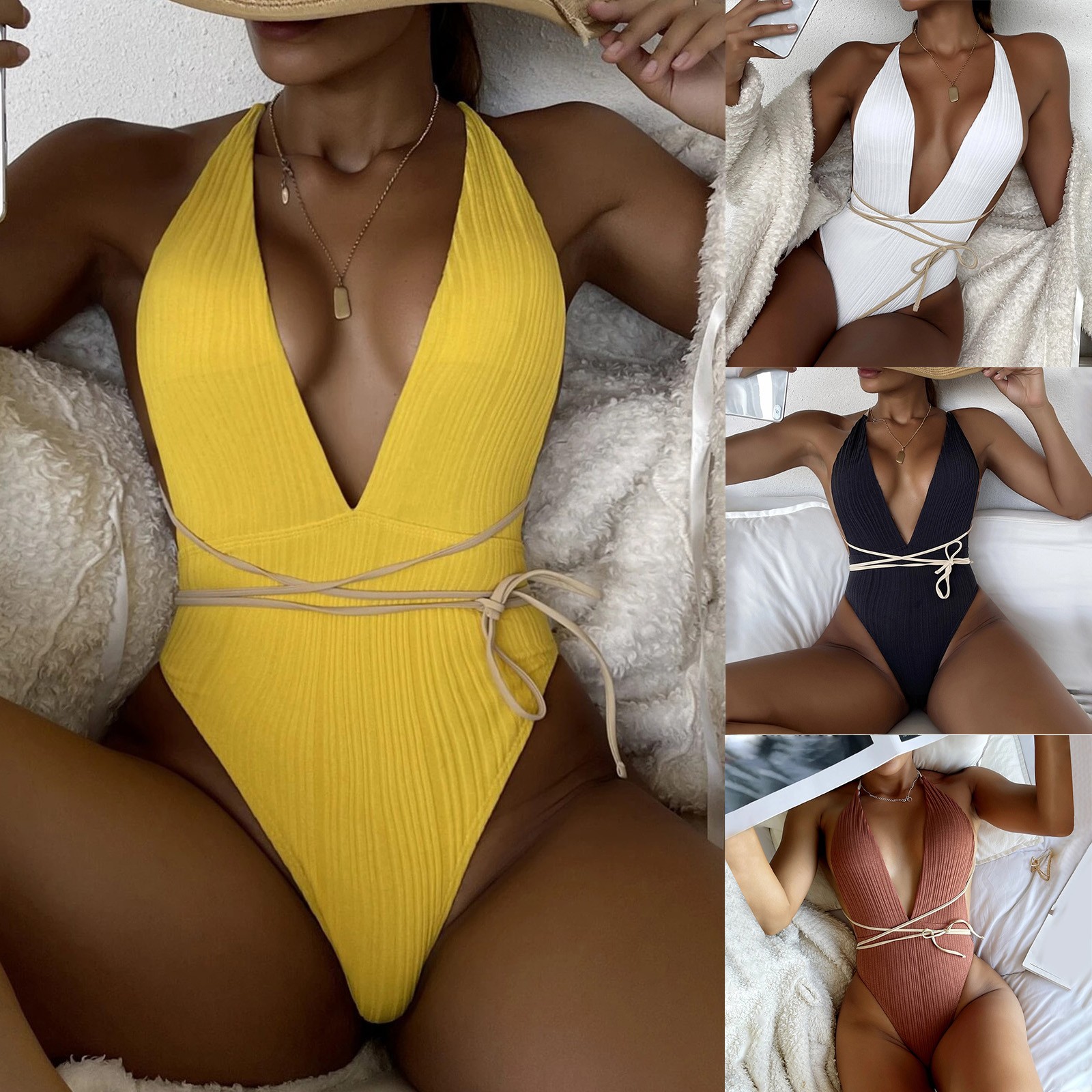 Отзывы о Женский сиамский купальный костюм лоскутный слитный купальник с глубоким