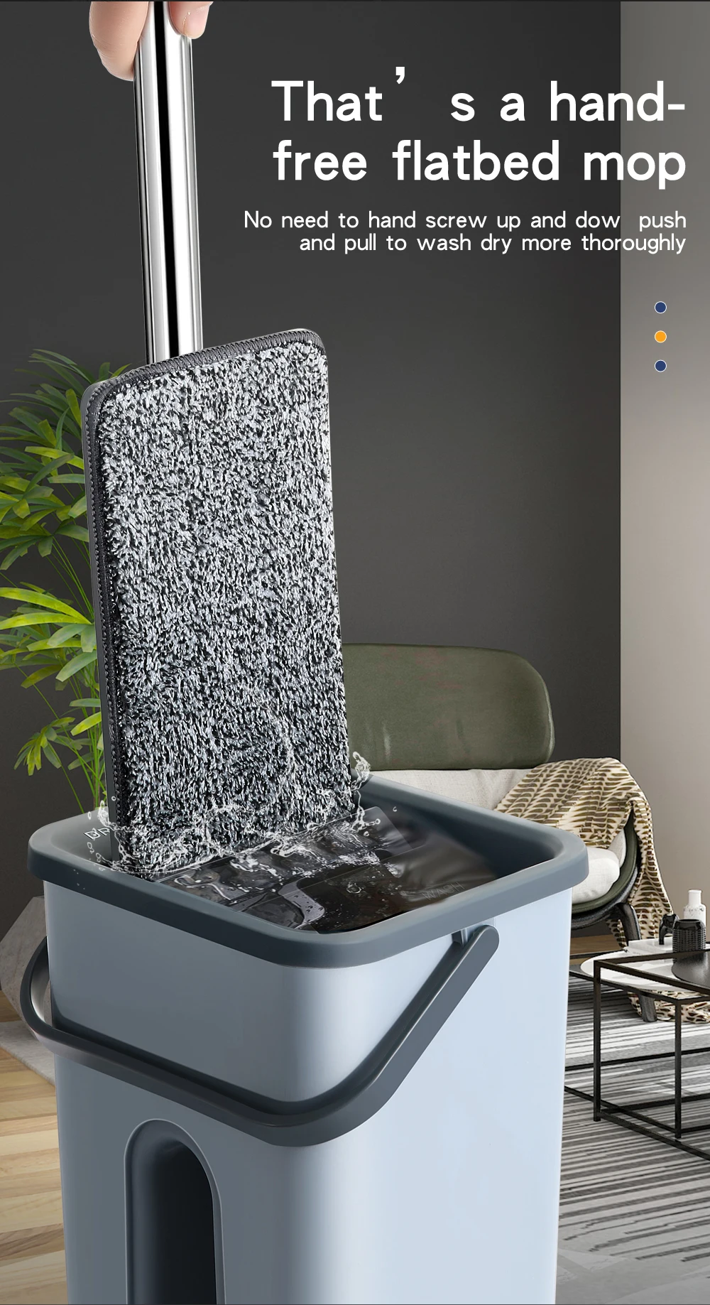 【 Вращающаяся на 360 ° головка швабры без мертвых углов очистки: Наша Швабра из микрофибры с поворотным шарниром на 360 °, гибкой шваброй, двухсторонний автоматический отскок, обеспечивает более удобный способ стирки и сушки.