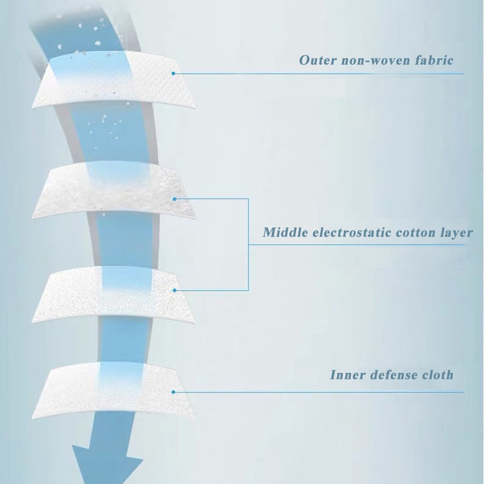 Специальный 4-х слойный нетканый материал + выдувная ткань из расплава дизайн, может предотвратить автомобильный отходящий газ, пыльцу и т. д., скорость фильтрации ≥ 95%