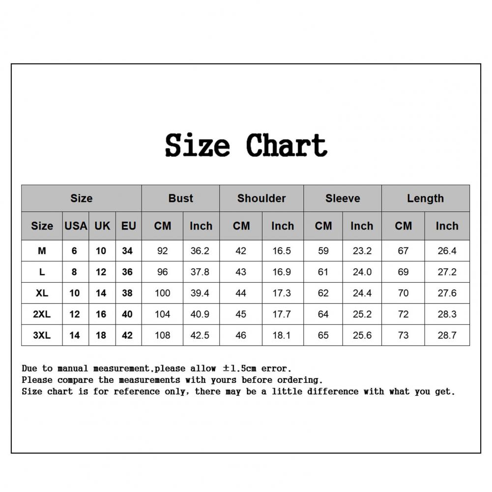 Размер: 3XL, обхват груди: 108 см/42,5 дюйма, длина: 73 см/28,7 дюйма, ширина плеч: 46 см/18,1 дюйма, длина рукава: 65 см/25,6 дюйма (приблизительно)