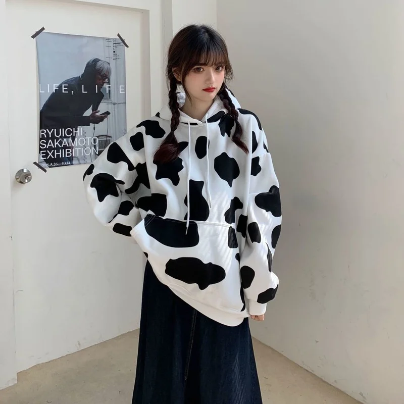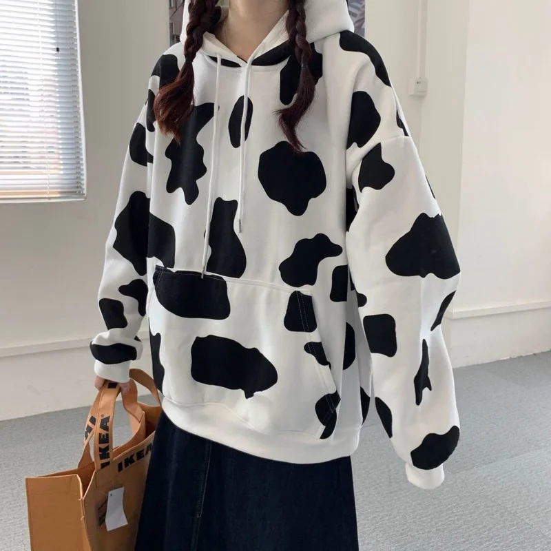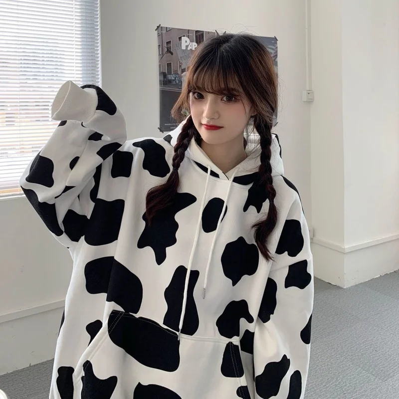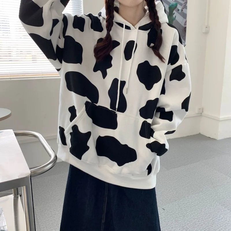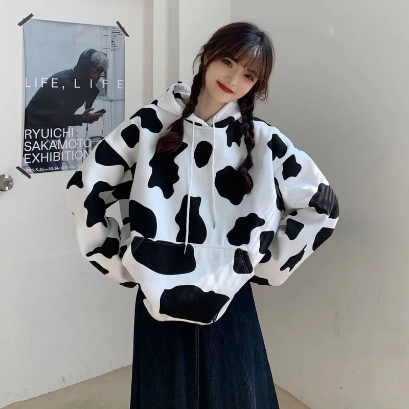 Отзывы о Худи HOUZHOU женское с коровьим принтом милая корейская модная Толстовка длинным