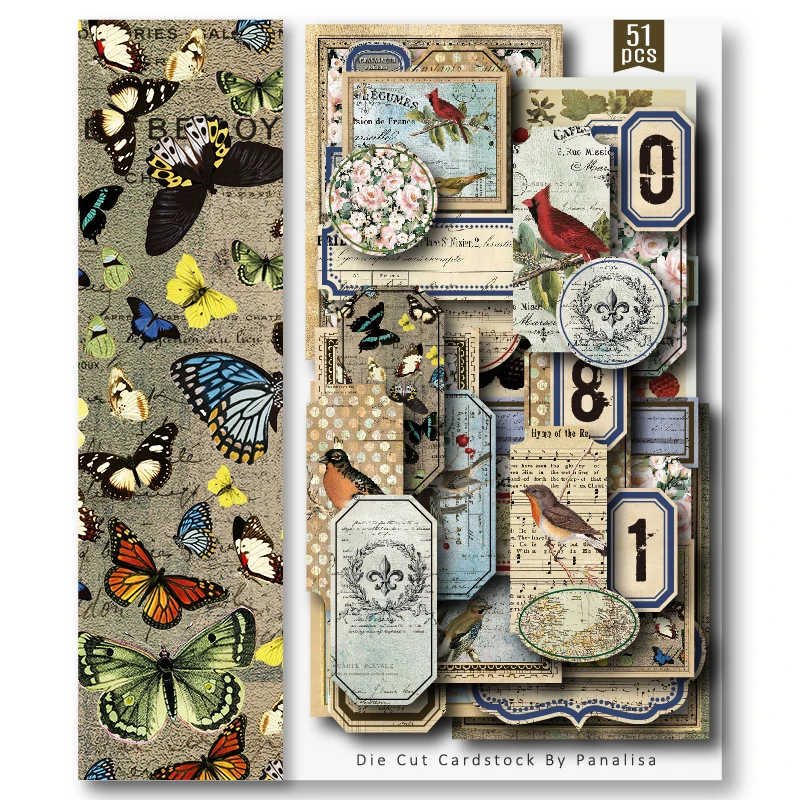 Отзывы о Panalisacraft 51pcs Butterfly Vintage Cardstock Die Cuts Collection Kit for Scrapbooking Planner/Card Making/Journaling Project - купить по