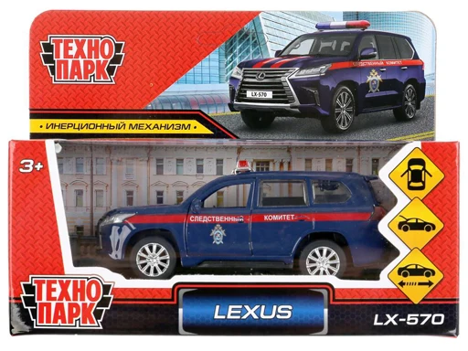Металлическая инерционная модель Lexus LX-570. Следственный комитет ТМ Технопарк станет отличным подарком для ребёнка:- открываются двери- открывается багажник- инерционный механизм (поставьте машинку на ровную поверхность, потяните за корпус назад, отпустите и она начнёт быстро двигаться вперёд)Юного водителя увлечёт игра с металлическаяической моделью автомобиля следственного комитета, выполненной с учётом всех особенностей прототипа. Благодаря открывающимся дверям и багажнику, которые делают машинку максимально похожей на настоящую, всегда можно заглянуть к ней внутрь, чтобы убедиться каждая деталь отлично проработана. Реалистичный дизайн данной модели позволит с головой погрузиться в игру и почувствовать себя настоящим правозащитником.Игра с инерционной машинкой ТМ Технопарк знакомит юного автолюбителя с моделями машин и видами спецтранспорта, а также тренирует: - координацию движений- внимание- ловкость Длина: 12 см.Материал: металлическая + пластмасса.Рекомендовано детям от 3 лет.