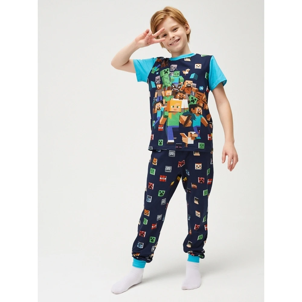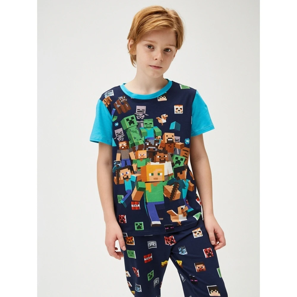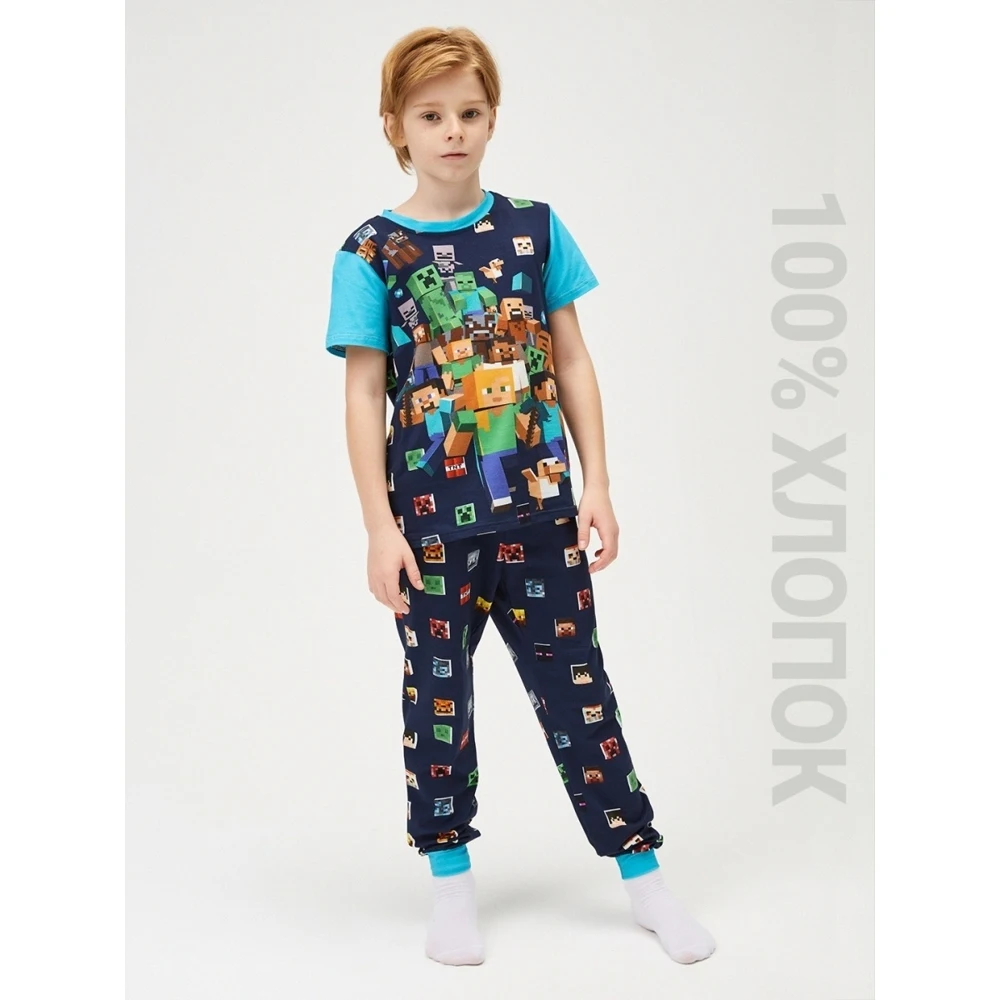 Пижамный комплект для мальчика Minecraft KPJ026c, темно-синий, хлопок 100%