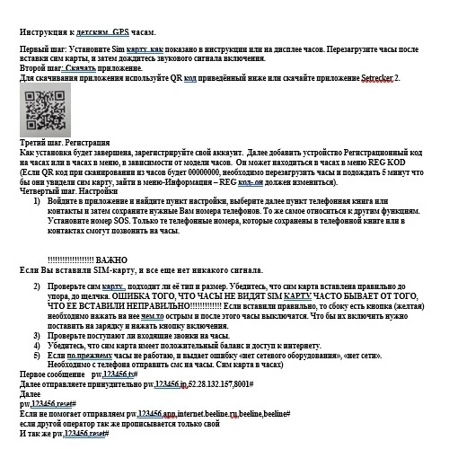 5)Если по прежнему часы не работаю, и выдает ошибку «нет сетевого оборудования», «нет сети». Необходимо с телефона отправить смс на часы. Сим карта в часах)
