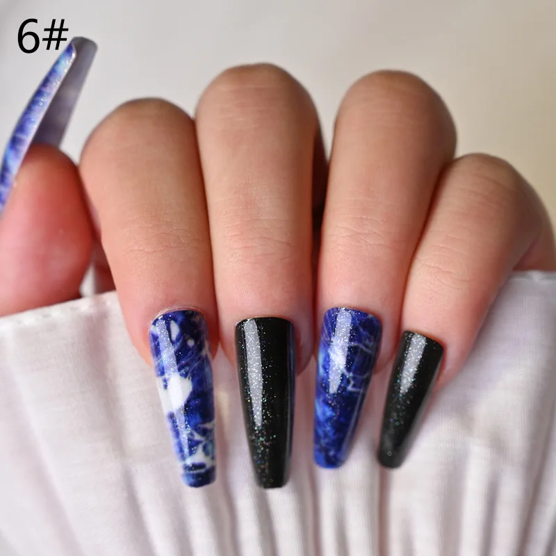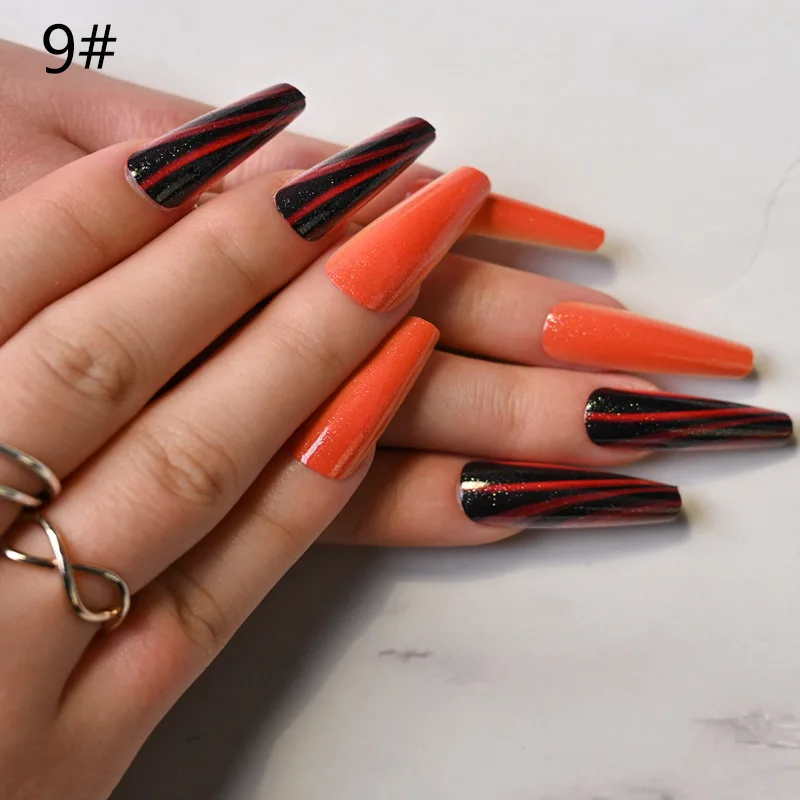 24 шт панк блеск красное пламя Длинные балетные накладные ногти Очаровательное украшение для маникюра съемное полное покрытие пресс на накладные ногти