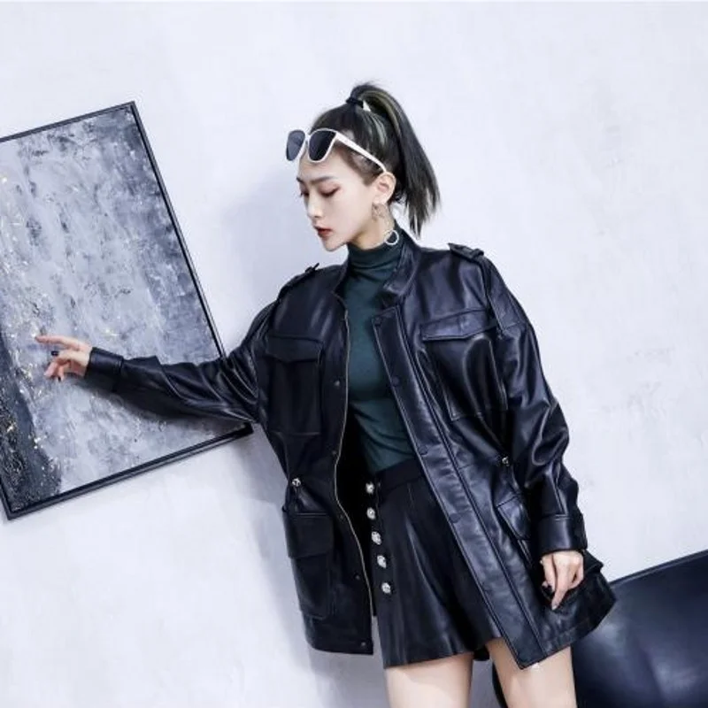 Отзывы о Женская куртка Осень 100% в стиле панк из легкой кожи тренчкот среднего размера с