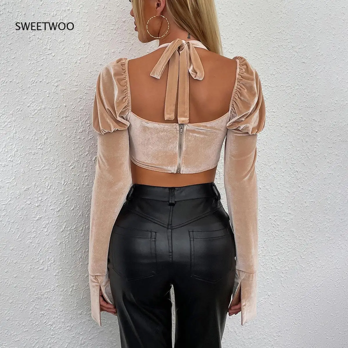 Отзывы о Европейский и американский новый золотой бархатный топ с пышными рукавами