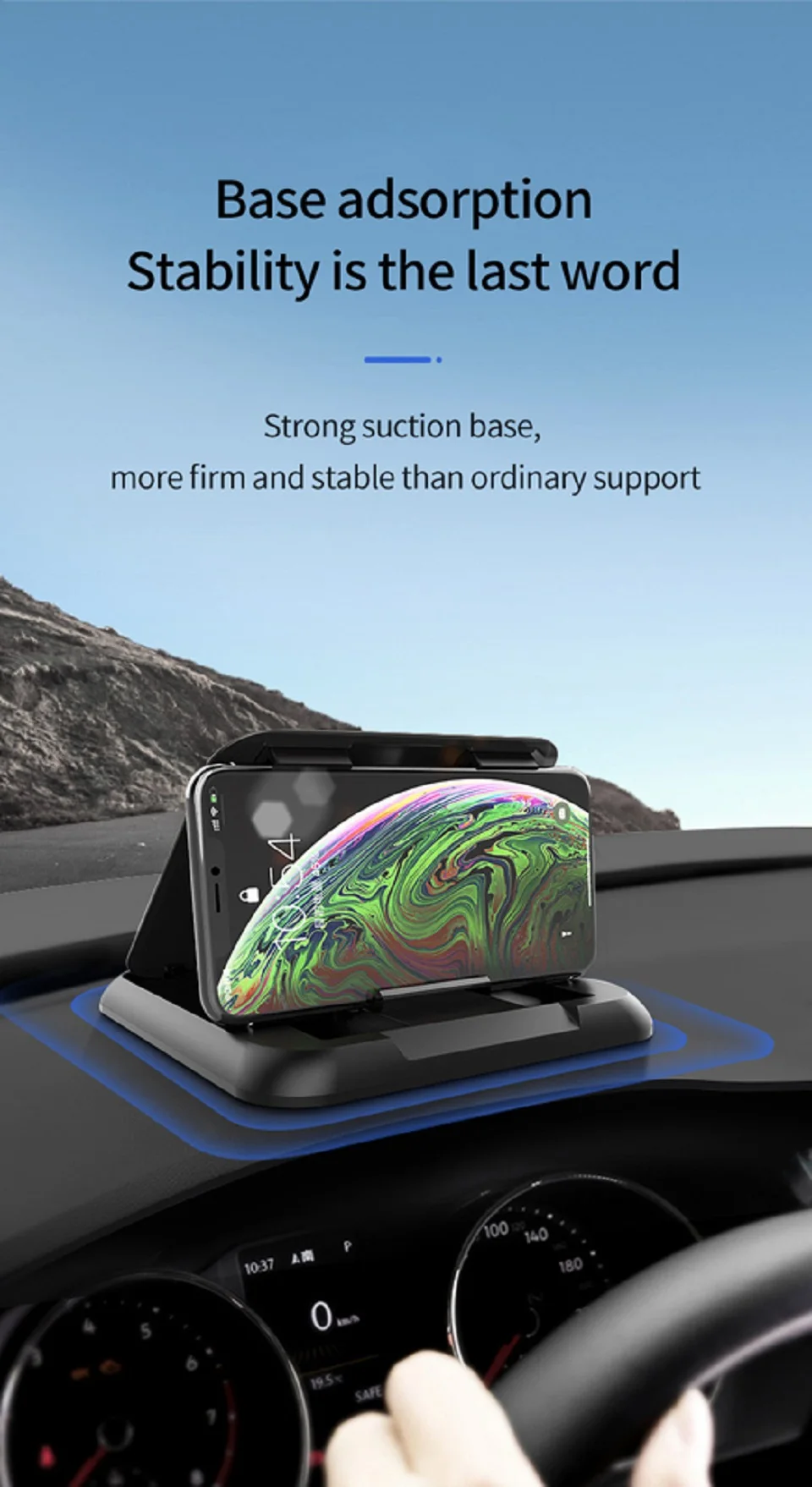 2. 【Стабильный и противоскользящий 】тройное усиление на приборной панели: большое основание из силикагеля окружено липким силиконом и присоской, так что держатель может быть прочно прикреплен к приборной панели, даже когда автомобиль проходит острые повороты, внезапные остановки или ускорение.
