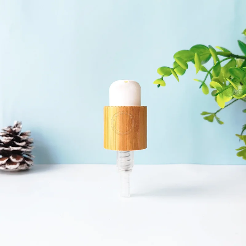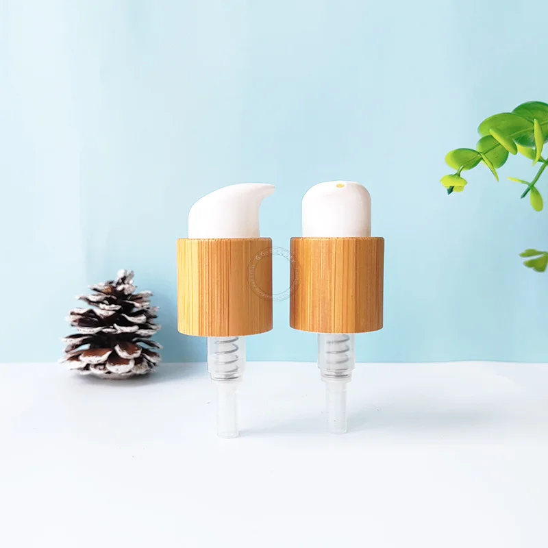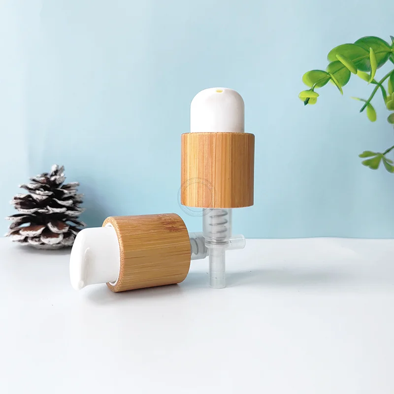 70 шт. Экологичные бамбуковые крышки для прессованных бутылок с белыми пластиковыми насадками, эмульсионный насос для лосьона, используемый для бутылок Cosmética 24 мм