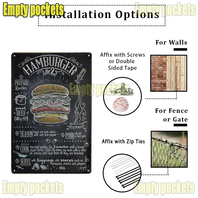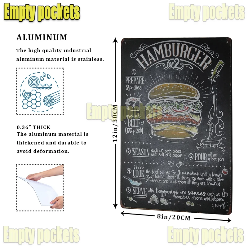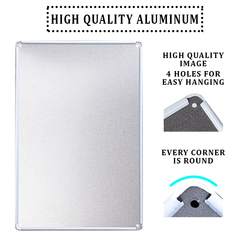 Идеальный дизайнВинтажный декоративный жестяной знак изготовлен со сложенными гладкими краями для безопасности и стабильности. Художественный настенный знак поставляется с 4 предварительно просверленными отверстиями для удобства. |