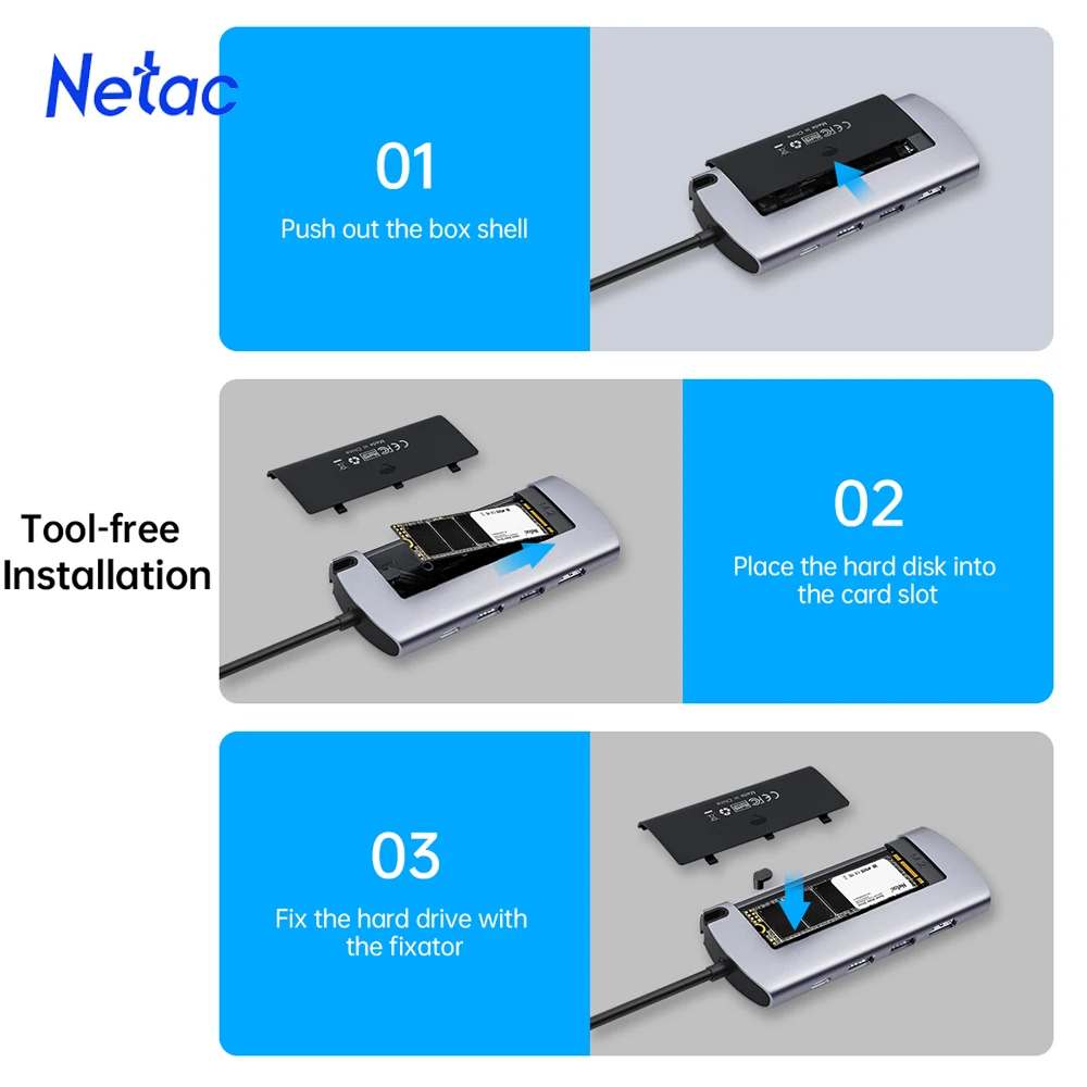 Отзывы о Чехол Netac Ssd m2 Внешний чехол для ноутбука Тип C ssd 6 в 1 адаптер 4K HDMI NVME PCIE NGFF - купить