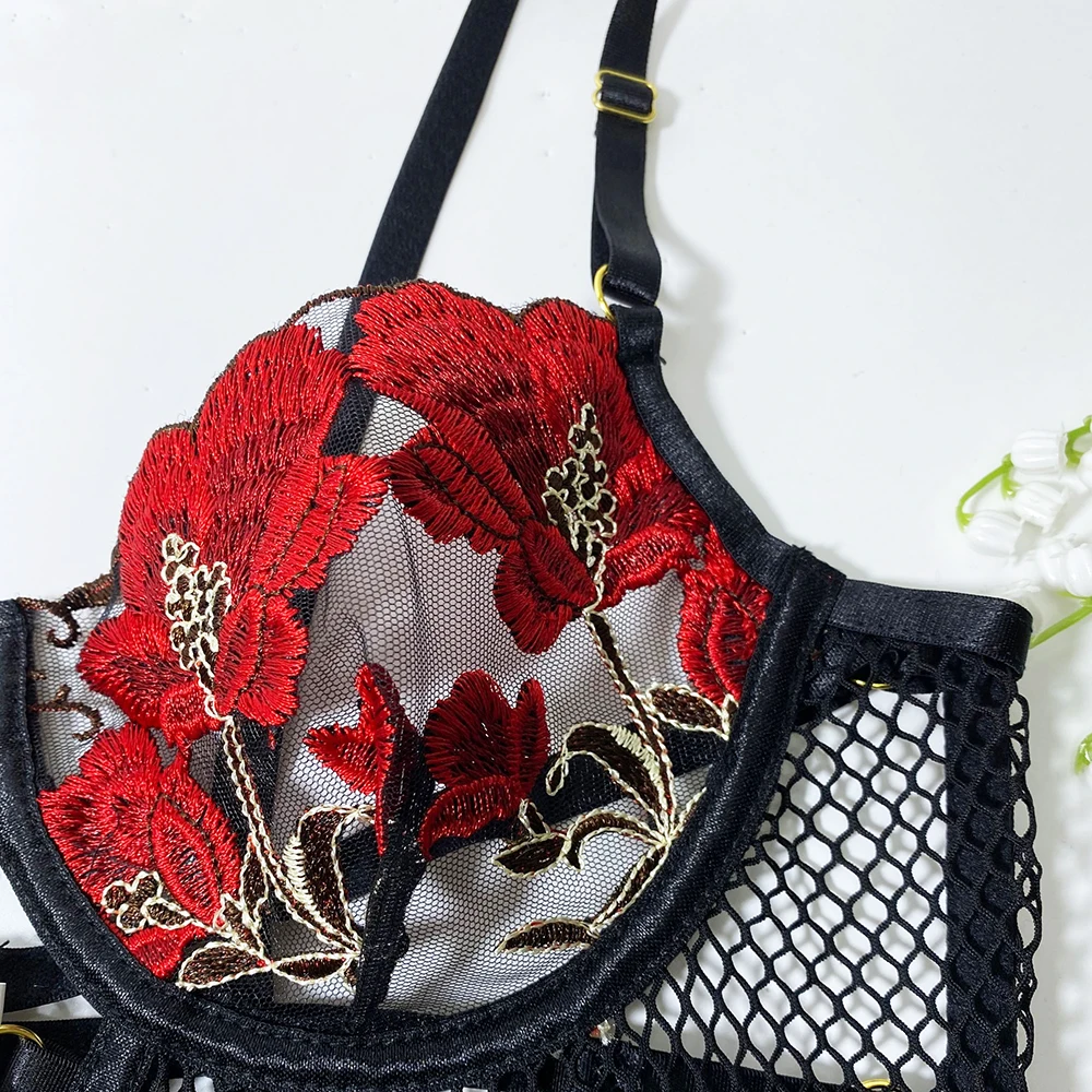 Отзывы о Новинка 2022 соблазнительное нижнее белье с вышивкой и красными розами комплект из