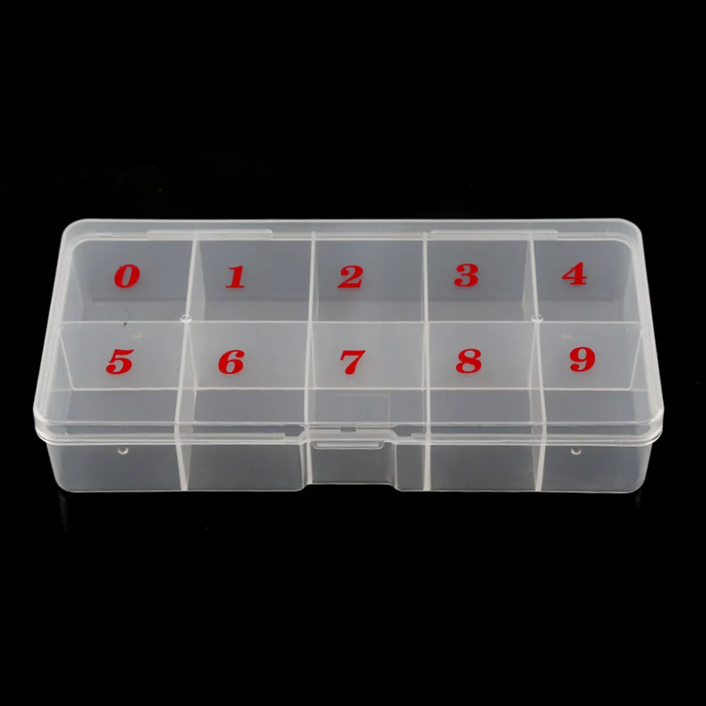 10Gird/коробка, прозрачный чехол для дизайна ногтей, пустой Футляр Для Хранения Чехол, стразы, хрустальные бусины, аксессуары для дисплея, контейнерОсобенности:1. 10 отделений для каждого пронумерованных от 0 до 9 будут держать ваши накладные ногти в порядке.2. Эта коробка для кончиков ногтей может хранить около 500 шт и 1000 шт ложных ногтей.3. Идеально подходит для хранения украшений для ногтей, геля для ногтей, акрила и других продуктов.4. Вы можете найти свои ногти с первого взгляда и сохранить различные советы отдельно.5. Идеально подходит как для профессионального использования, так и для личного использования.Характеристики:Материал: пластикЦвет: прозрачныйТип: Коробка для хранения накладных кончиков для ногтейФункция: хранение ложных кончиков для ногтей