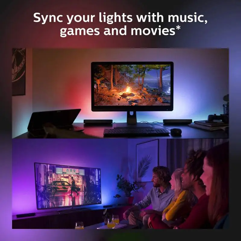 【Легко установить 】 Подключите умный светильник к задней части телевизора или компьютера с помощью сильного клея. Или используйте предоставленный кронштейн для легкой установки рядом с или за экраном. Эти лампы быстро устанавливаются и просты в эксплуатации.
