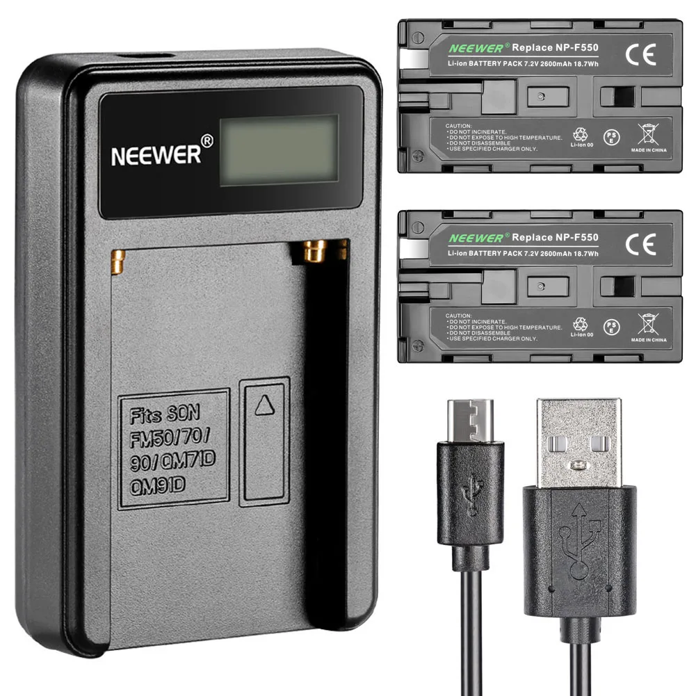 Neewer микро USB зарядное устройство + 2 шт в комплекте 2600 мА/ч, NP-F550/570/530 Замена батареи для Sony HandyCams, neewer Nanguang CN-160,CN-216,CN-126 со светодиодной подсветкой, лидер продаж, Специальное предложения накамерный видео свет