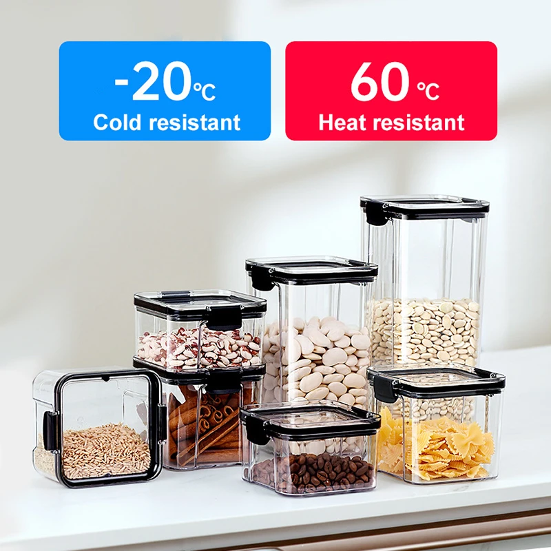 Эти контейнеры подходят для хранения муки, сахара, риса, орехов, бобов, злаков, закусок, корма для домашних животных или всего, что вам может потребоваться для хранения. Эти пластиковые контейнеры для хранения может использоваться в качестве выпечки лотки-контейнеры или холодильных установок. Микроволновая печь (ниже 60 ℃)