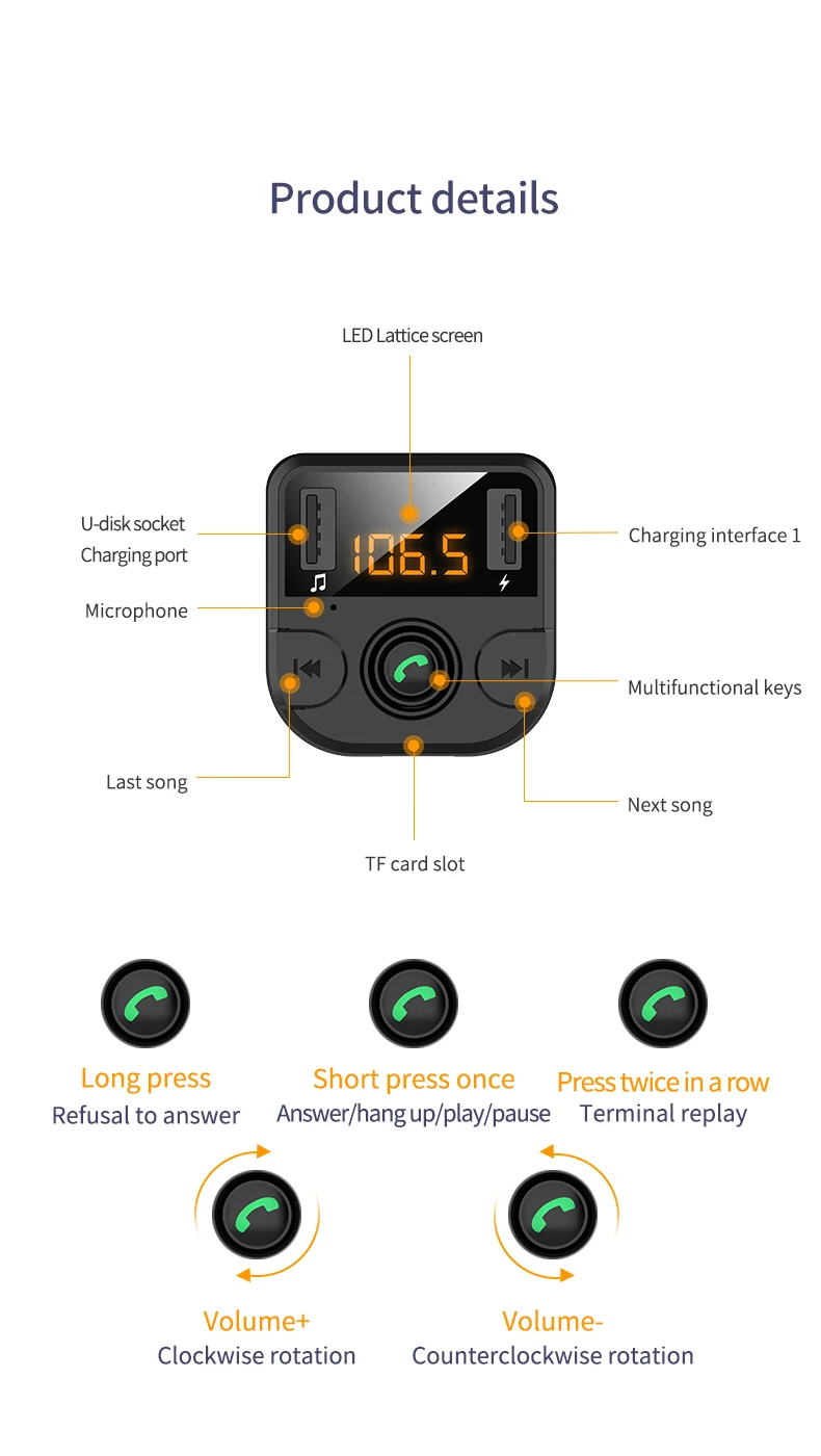 ⚡【Bluetooth Hands Free Call】 Поддержка Bluetooth hands-free phone, ответ, повесить трубку, отклонить, перезвонить и другие функции телефона.