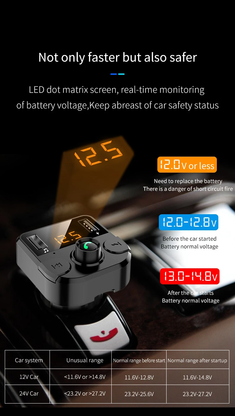 ⚡【Функция безопасности 】безопасность в первую очередь. Оснащен вольтметром, чтобы показать вам состояние вашего автомобильного аккумулятора. Напряжение должно быть между 13. 2 В до 14,7 В, когда ваш автомобиль включен и движется. 12,2 В до 12,8 В, когда ваш автомобиль припаркован, и зажигание выключено.