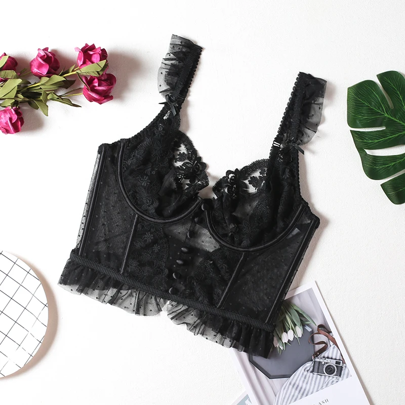 Отзывы о Цветочный Secret кружевное нижнее белье женские пуговицы укороченный Топ женский