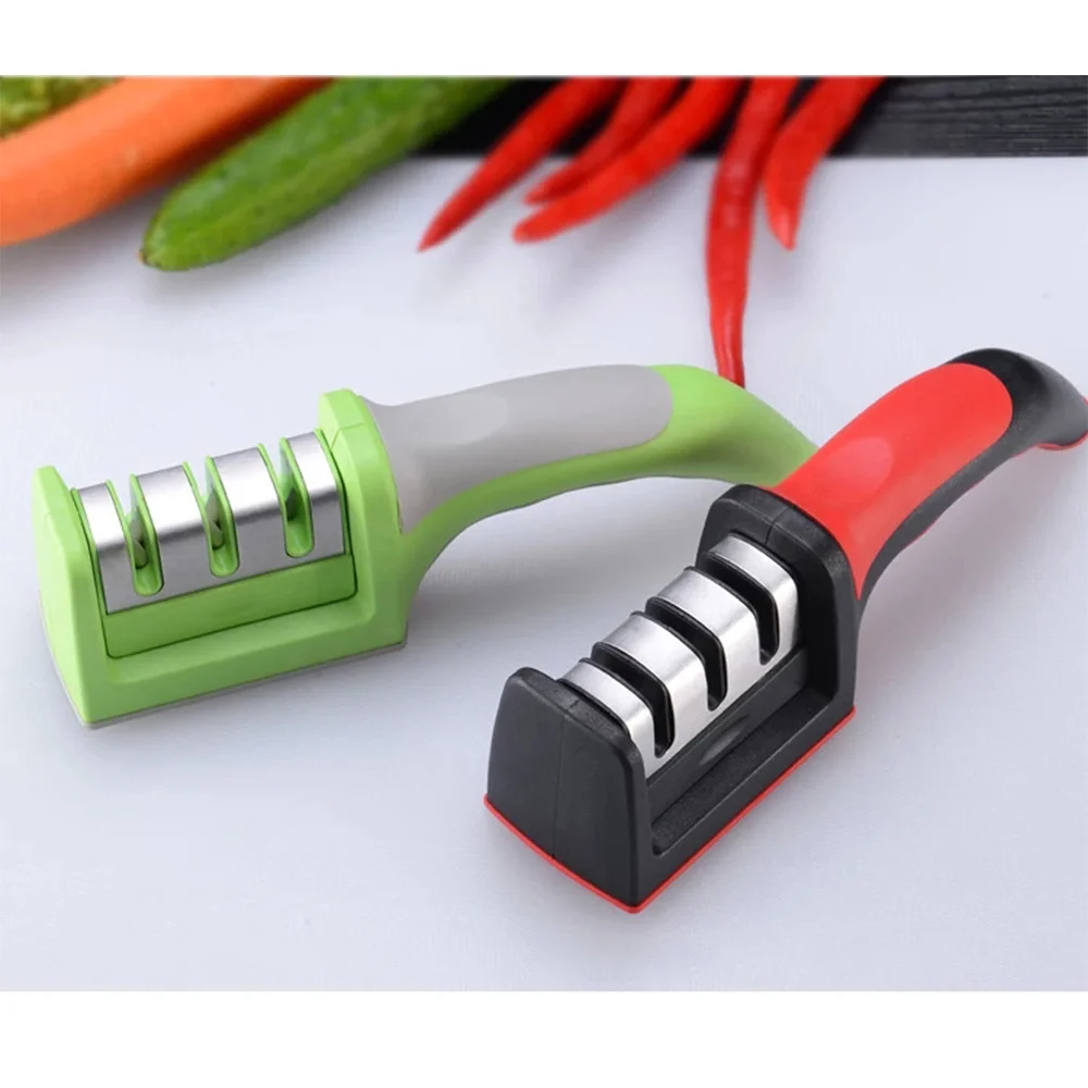 Точилка для кухонных ножей, 3 этапа, ручные ножницы, инструмент для заточки с нескользящей основой