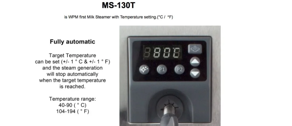 Теперь вы можете легко парить и нагревать молоко на работе или дома! MS-130T WPM молочный отпариватель является идеальным дополнением к капсульным машинам, которые могут производить только эспрессо. Он изготовлен с компактной конструкцией и может нагреваться до 200 мл молока до 60 градусов Цельсия всего за 40 секунд. Технология супер парового термоблока также может производить микропена с гладкой, шелковистой текстурой. MS-130Tnow поставляется с функцией удаления накипи одним нажатием кнопки!
