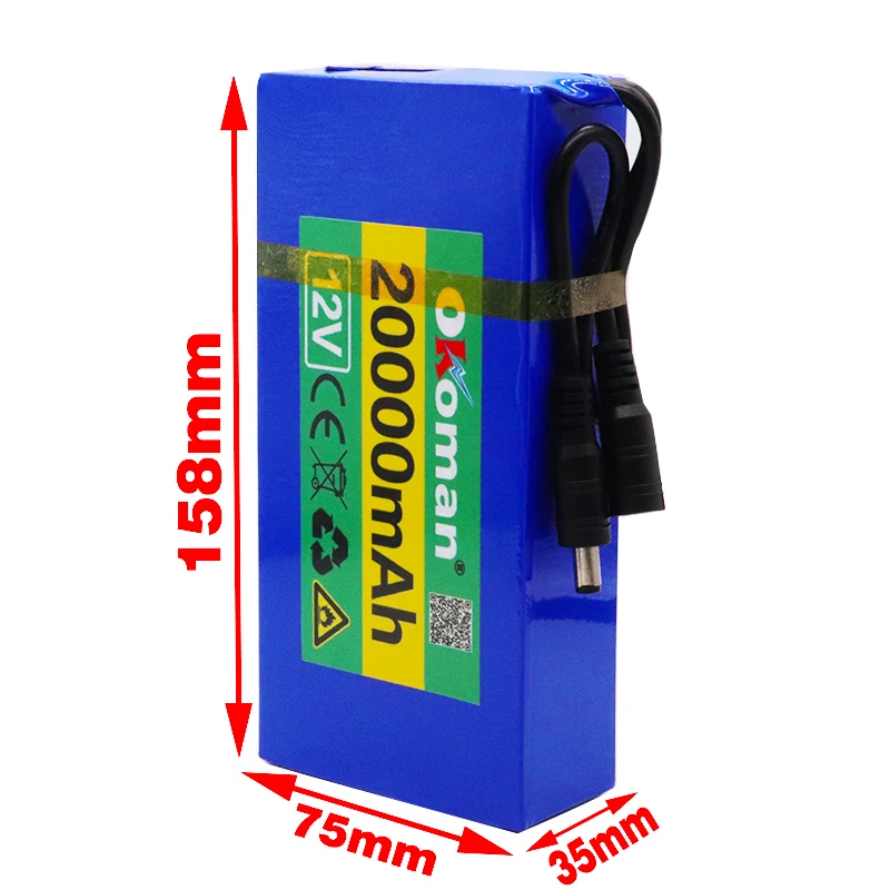 Характеристика:100% новое высокое качество!Эта батарея перезаряжается с литий-ионным аккумулятором 20000 мАчСупер емкость для хранения.И рабочие индикаторы.Предназначен для системного оборудования с использованием источника питания 12 В.Встроенный ВКЛ/ВЫКЛ для экономии энергии.Большое значение мАч означает длительный срок службы батареи.Перезарядка/разрядка.Специально разработано для оборудования системы питания с источником питания постоянного тока 12 В.Вы можете использовать эту батарею для питания наших мощных беспроводных передатчиков, камер видеонаблюдения и многого другого.Подходит для ваших нуждХарактеристики продукта:Тип батареи: перезаряжаемая литиевая батарея.Цвет: синийЕмкость: 20000 мАчВход напряжение: 12,6 VПостоянный токВыход Напряжение: 10,8 V-12,6 V DC Размер: 158 мм x 76 мм x 38 ммИнструкции по зарядке:1. Включите выключатель батареи при зарядке, пожалуйста, нажмите «я»2. Зарядное устройство. Процесс зарядки красный и зеленый светильник включен во время полной зарядки.Примечания:1. Из-за различий между различными дисплеями изображение может не отражать фактический цвет проекта. Мы гарантируем тот же стиль, что и на фото.2. Из-за различных методов измерения могут быть физические ошибки 1-3 см. Спасибо!Посылка включает в себя:1 адаптер переменного тока (по умолчанию для отправки штепсельной вилки европейского стандарта, пожалуйста, оставьте сообщение для штепсельной вилки США)1 x литий-ионный аккумулятор 20000 мАч