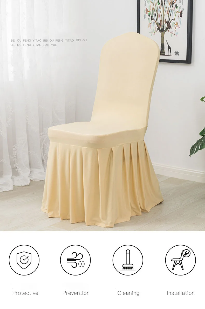 1. Стульев на банкетах и Сделано из мягкого полиэстера ярд ткани и широкий пояс с повышенной эластичностью. Супер тонкий, но прочный для того, чтобы защитить ваши стул от скольжения.