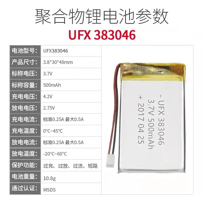UFX полимерный литиевый аккумулятор 383046 (500 мАч) 3.7vvr очки MP3 Bluetooth аудио и другие игрушки с защитной доской светодиодный солнечный бортовой Промышленный контроль