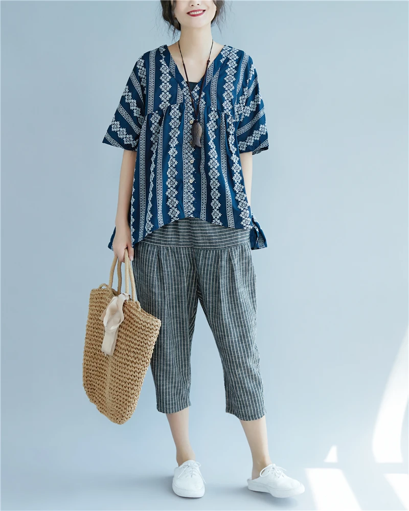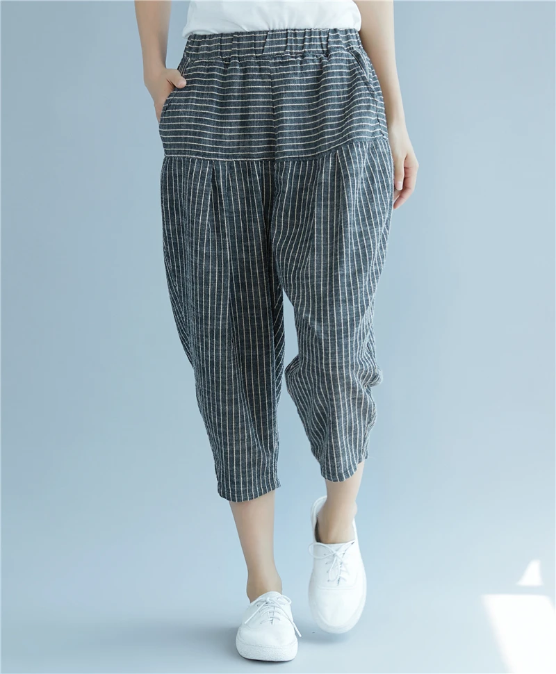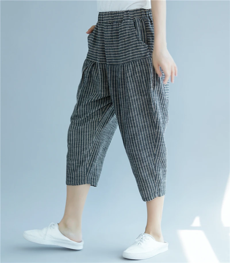 Отзывы о Женские Полосатые капри Oladivi большого размера длиной 3/4 шаровары Модные женские