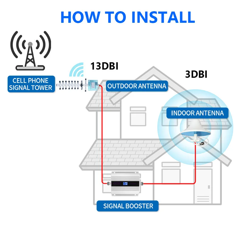 Посылка включает:Усилитель сигнала 70 дБ * 1Кабель 10 м * 1Наружная антенна Yagi * 1Внутренняя потолочная антенна * 1Источник питания * 1Руководство пользователя * 1