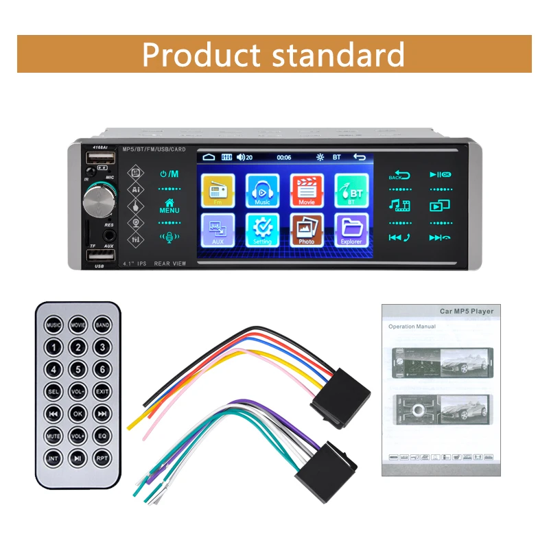 4168A 4-дюймовый с одним слиток HD Автомобильный Bluetooth MP5 радио, емкостный сенсорный экран, интеллектуальное голосовое, автомобильный Соединительный MP5